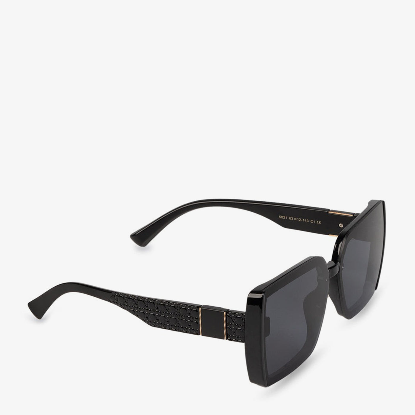 A striking square frame with sharp, edgy cuts that deliver a bold look. The solid lens tone complements its wide angular shape, offering both style and comfort.