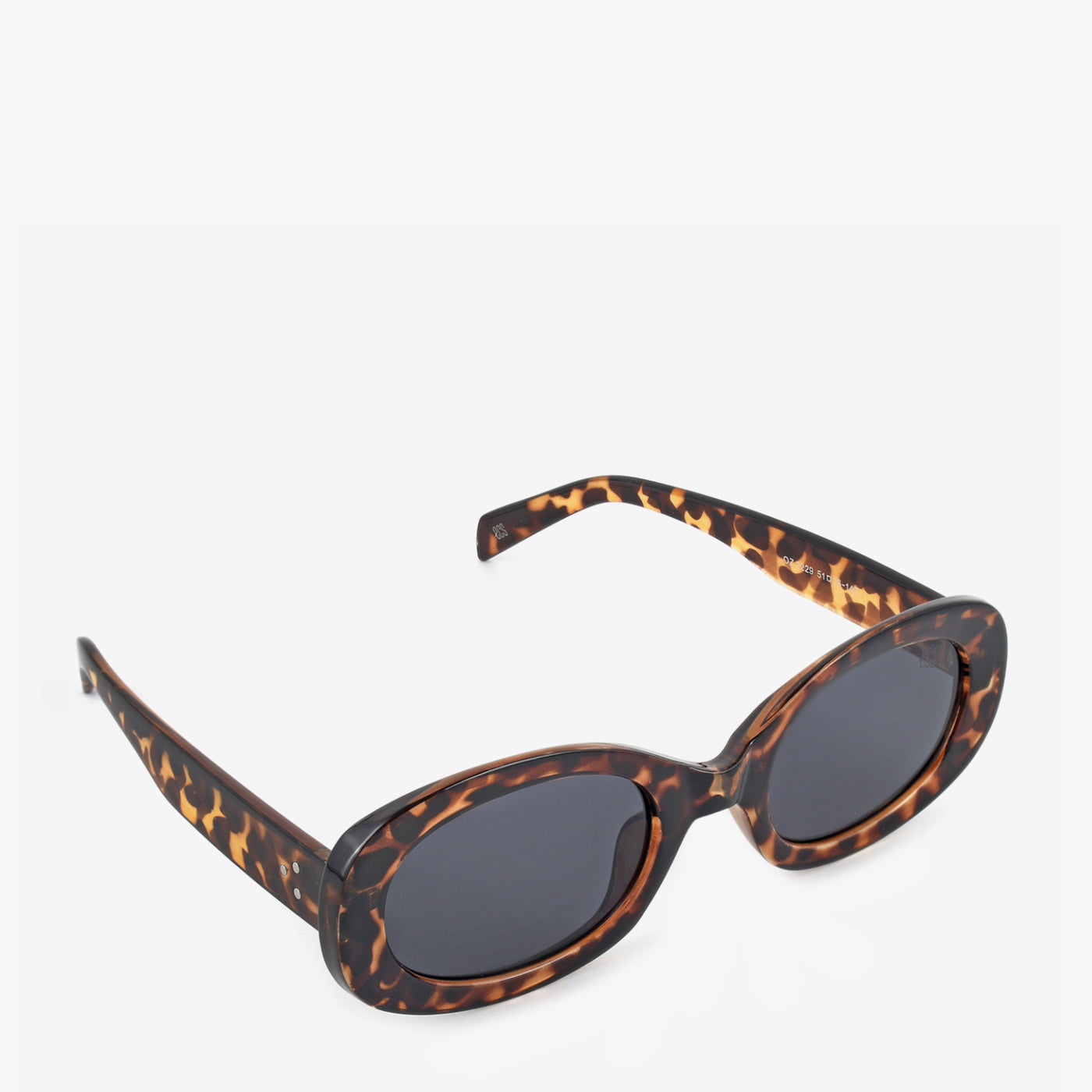 Embrace a touch of vintage flair with these stylish oval sunglasses. They feature a full-rim frame with a subtle mottled pattern, offering a classic yet distinctive look. The dark lenses provide essential UV protection, making them a fashionable and practical accessory.