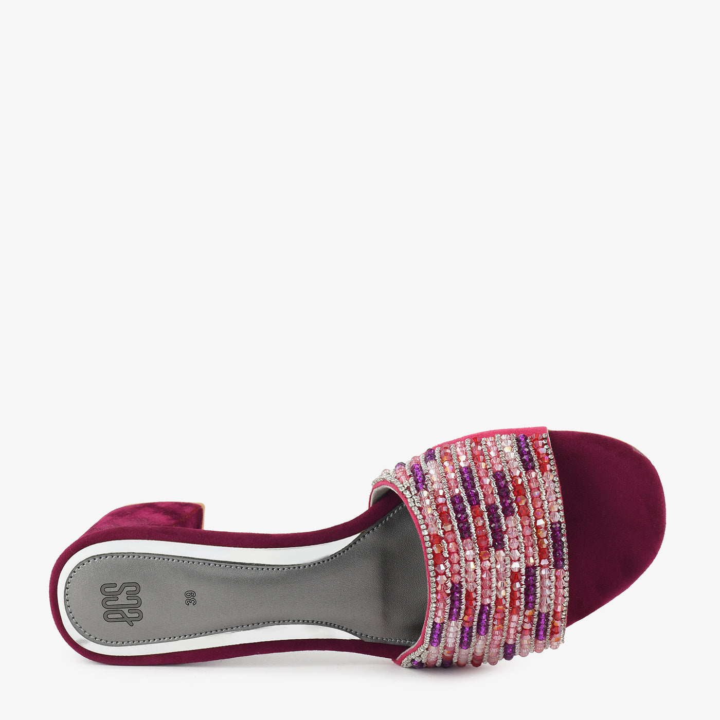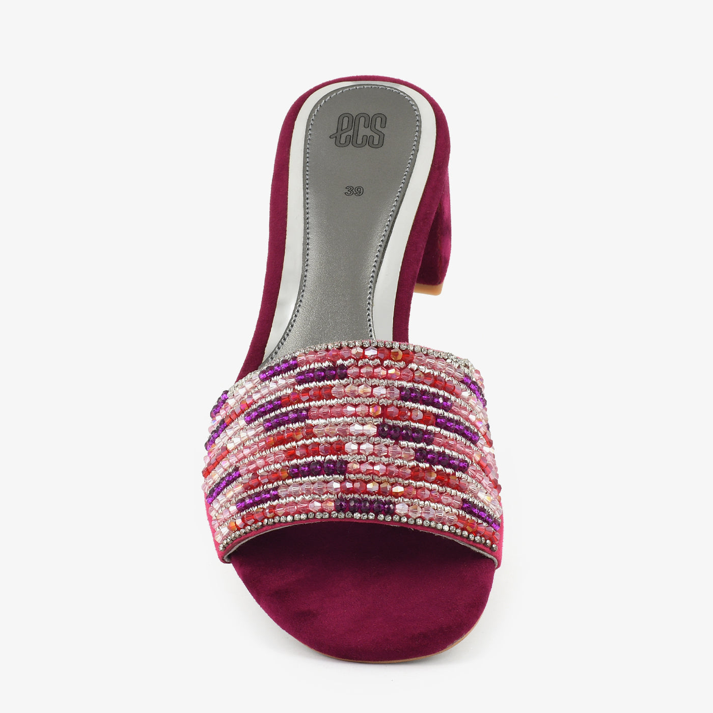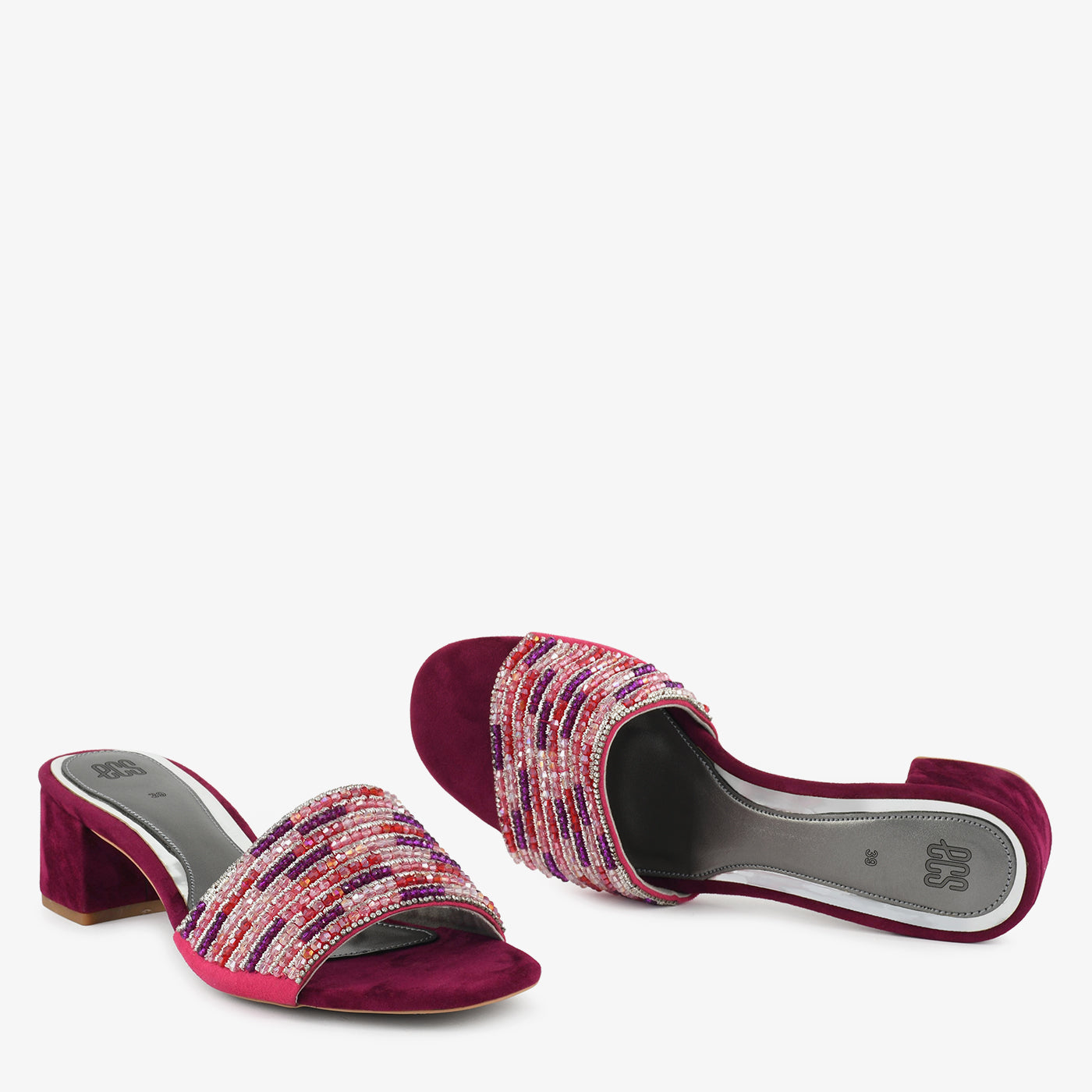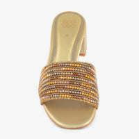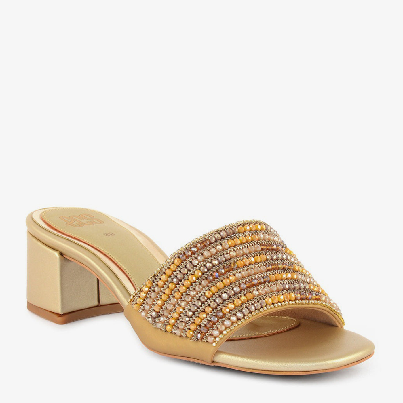 Designed with layered bead detailing across the upper, this slipper brings elegance to everyday wear. The soft footbed provides comfort, while the block heel adds subtle elevation without strain. Easy to slip on and off, making it practical yet stylish. Suitable for casual gatherings and semi-formal outings.