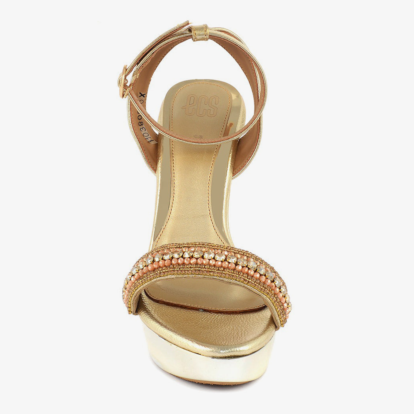 A sleek platform heel with a crystal-encrusted strap and ankle buckle, built for both shine and support. Perfect for brides who want extra height without compromising comfort.