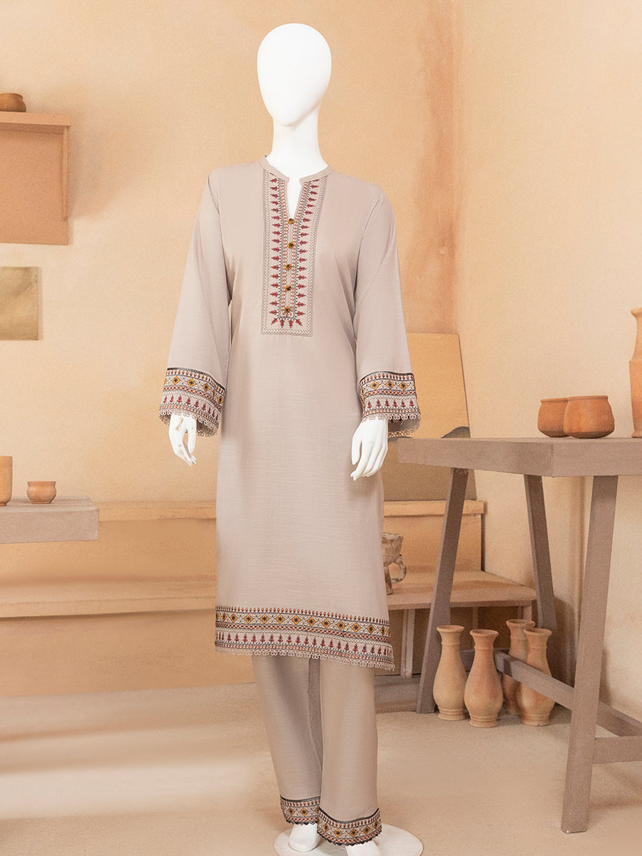 Thread Bloom is a 2-piece set crafted in durable khaddar. Featuring a basic shirt paired with matching trousers, this outfit blends comfort with timeless appeal. Dyed and embroidered details bring a touch of elegance, making it suitable for both casual and semi-formal wear.