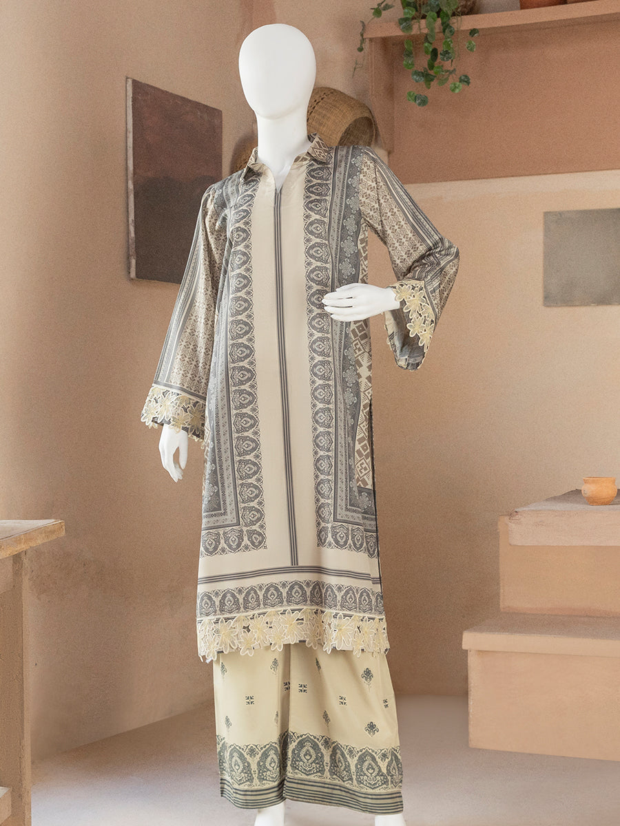 Mystic Petal is a 2-piece outfit crafted from luxurious crape silk. Designed with a basic shirt and trouser, it offers both comfort and elegance. The printed pattern elevates its look, making it perfect for modest daily or semi-formal styling.