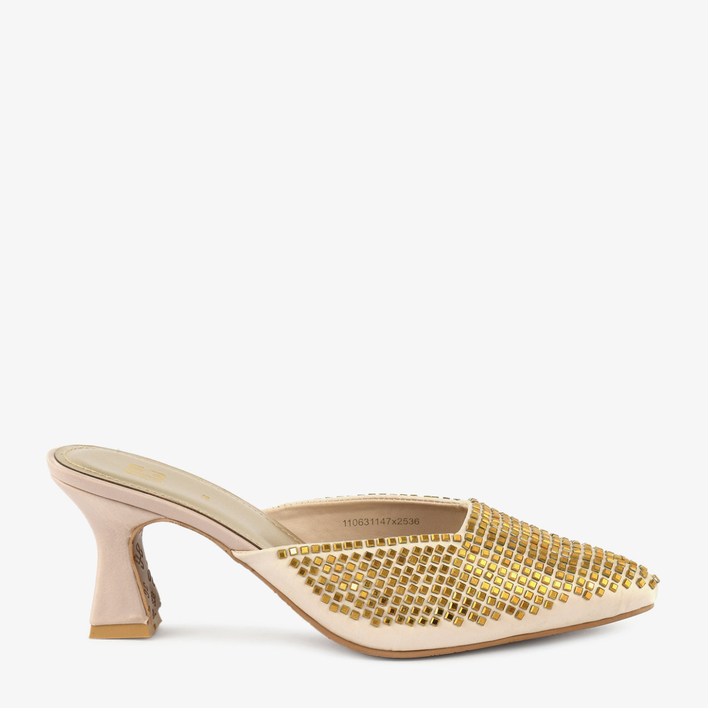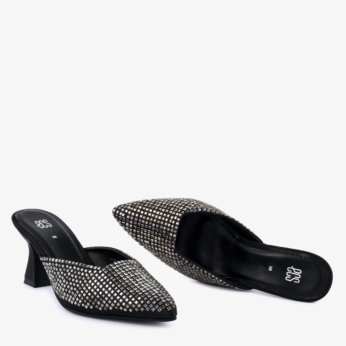 A contemporary mule that exudes effortless charm and luxury. Its slip-on style and textured surface bring sophistication to every step. The mid-heel offers just the right height for day-to-night comfort. Perfect for modern, modest wardrobes.