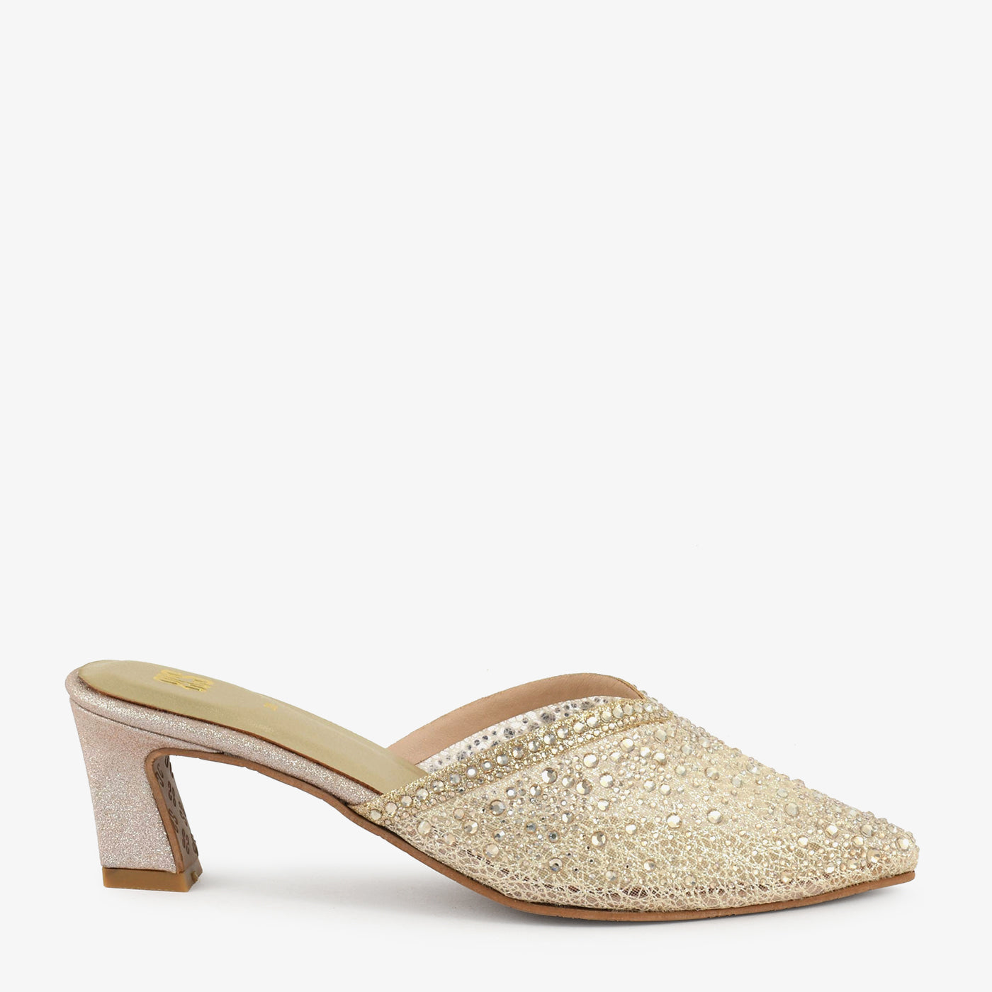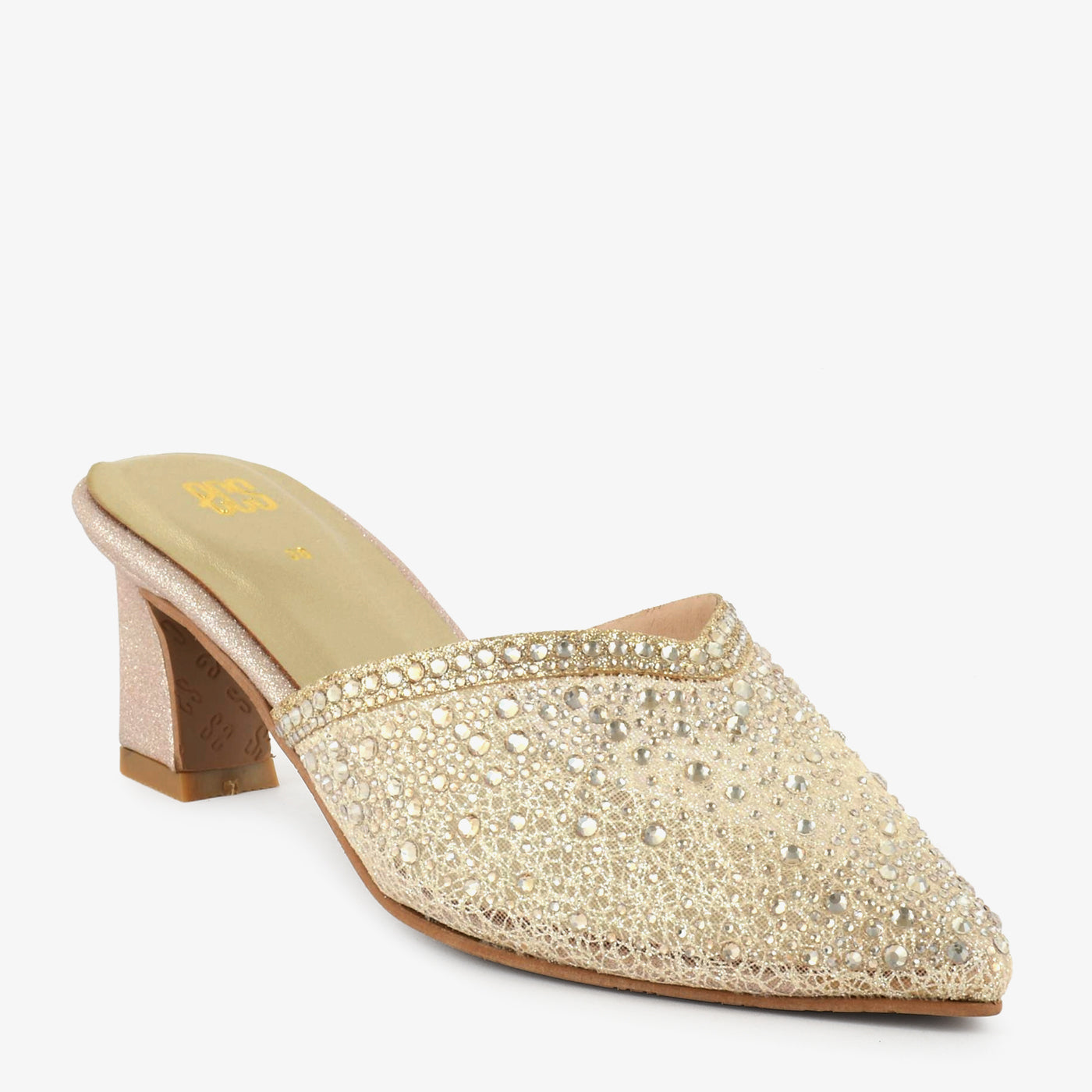 A refined mule crafted with a pointed silhouette and a shimmering textured upper for an elevated occasion-ready appeal. Its smooth footbed and supportive block heel ensure comfort without compromising elegance. The embellished surface adds a radiant touch that catches the light gracefully. Perfect for festive evenings, semi-formal gatherings, and special celebrations.