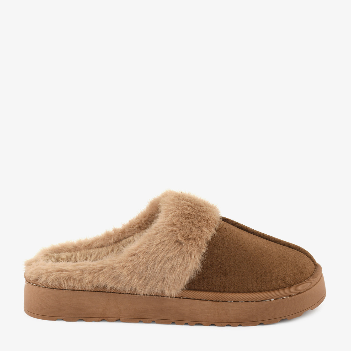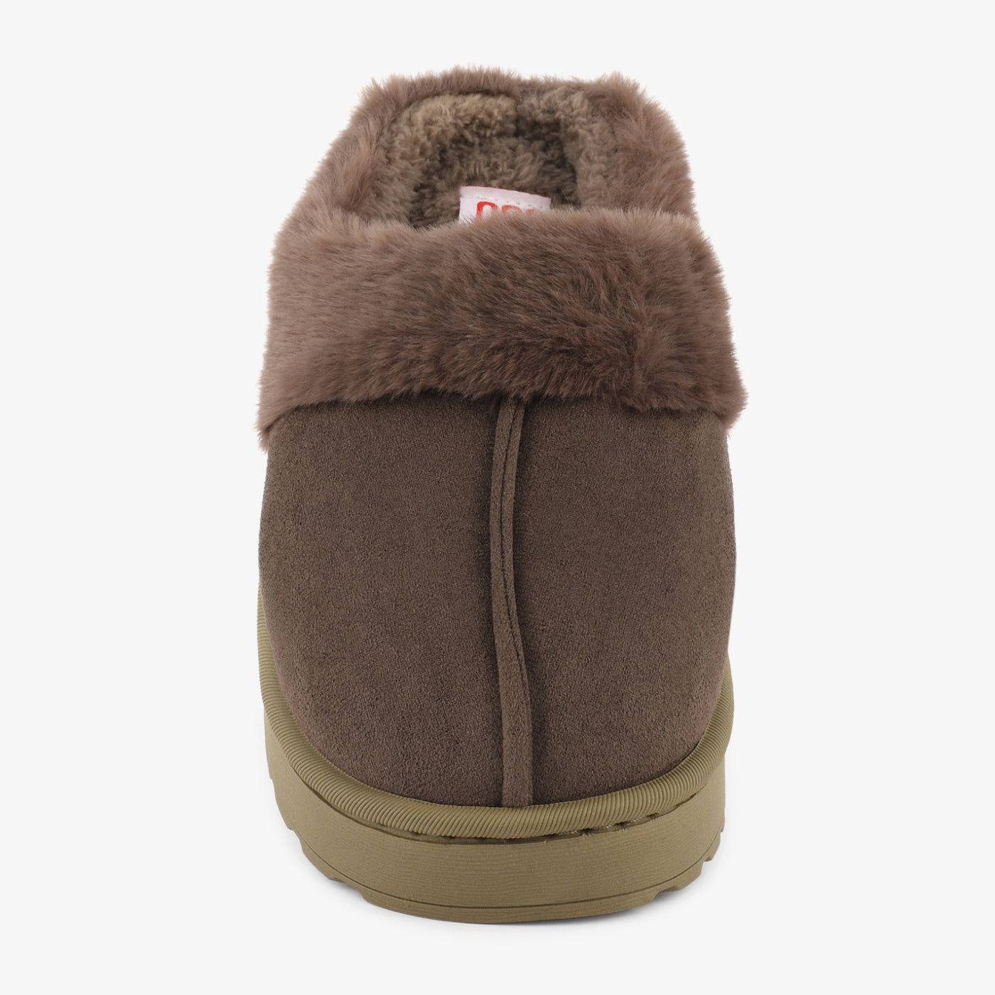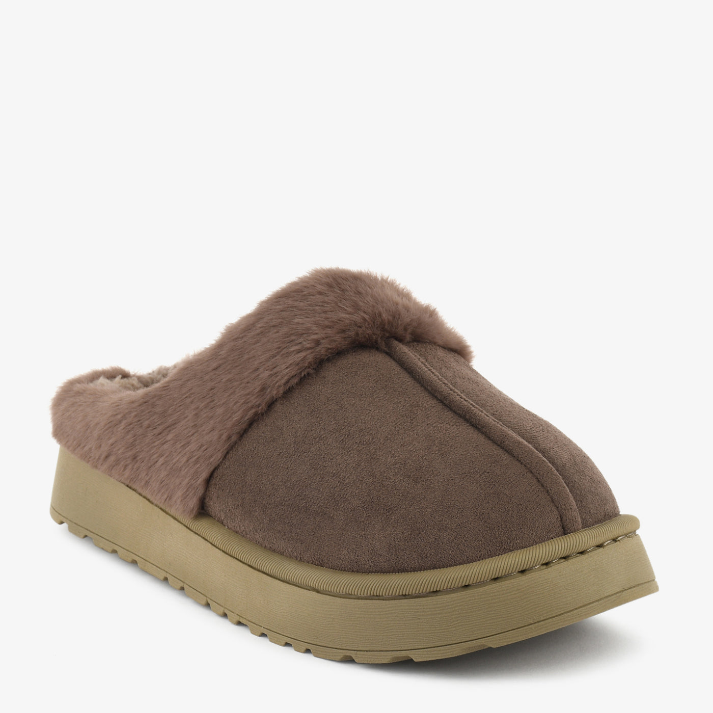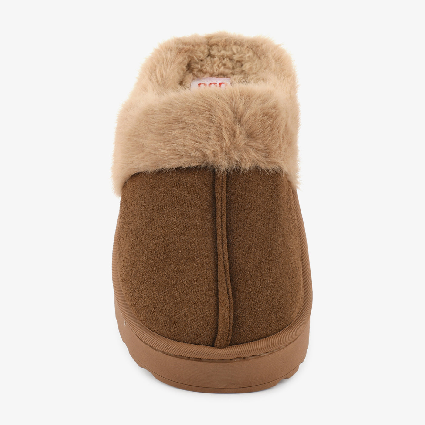 A soft, warm mule perfect for chilly days. The faux fur lining keeps your feet snug, while the roomy rounded front offers comfort and warmth. Thick cushioned sole supports all-day...
