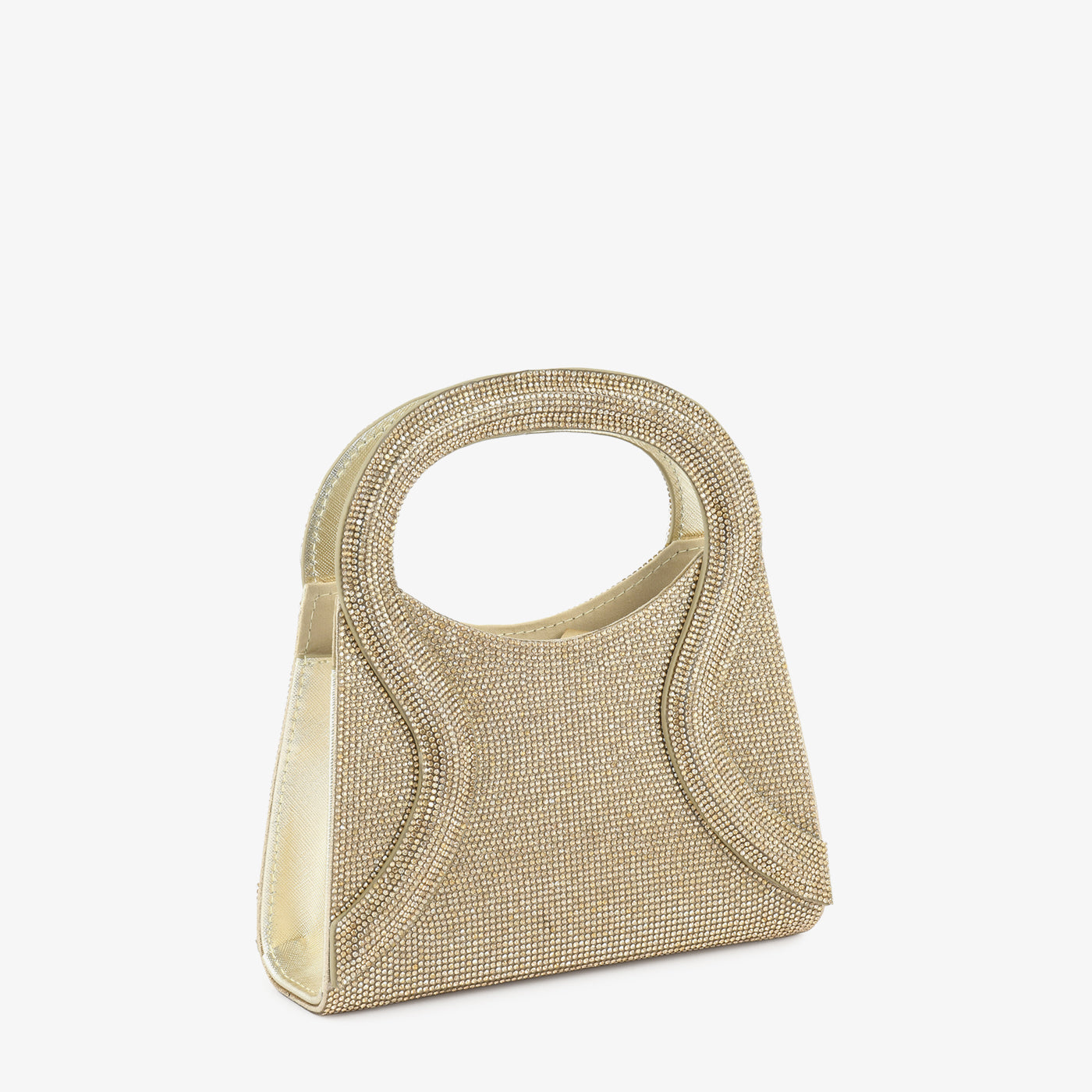 Step into timeless glamour with the "Shimmer Wave" handbag. Its sleek silhouette is adorned with shimmering crystals and elegant wave-inspired handle detailing, making it a versatile pick for festive or formal events.