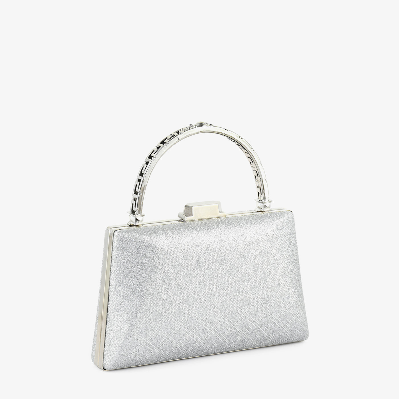 Step into refined elegance with the "Grace Bag." Its textured gold finish and structured silhouette, paired with a statement handle, make it the perfect companion for upscale occasions.