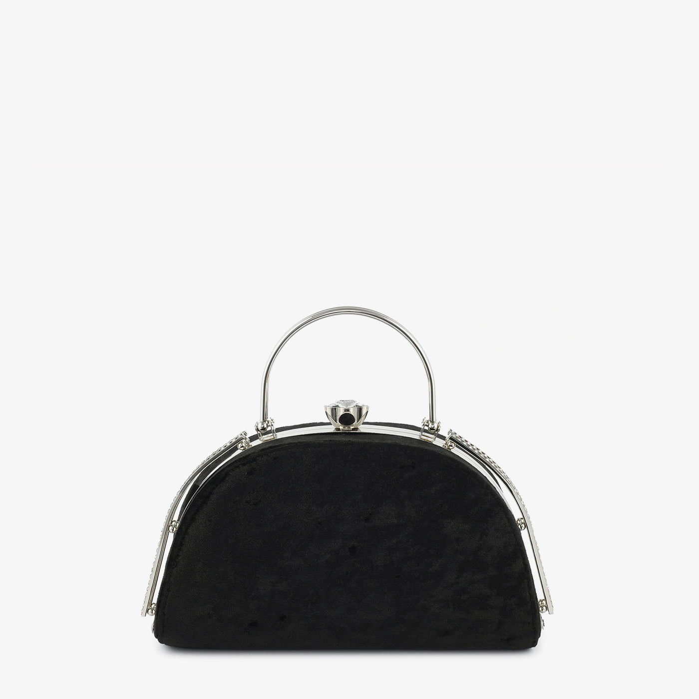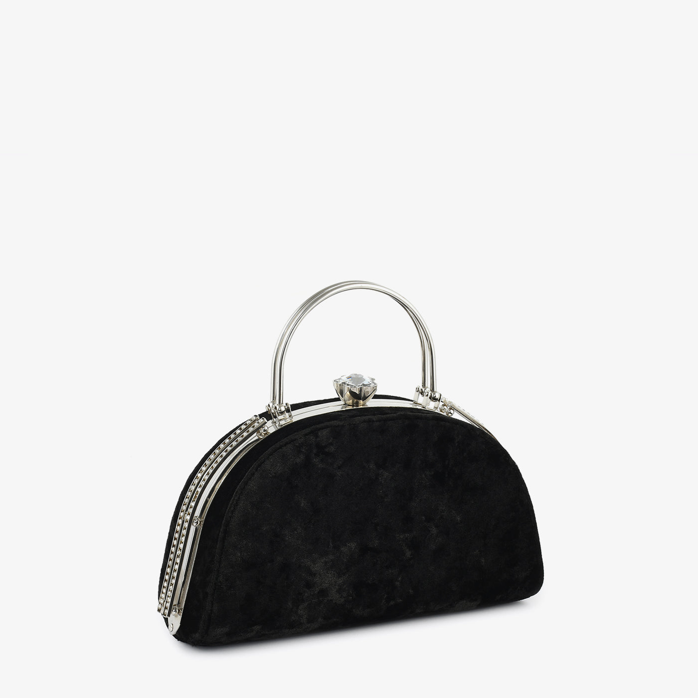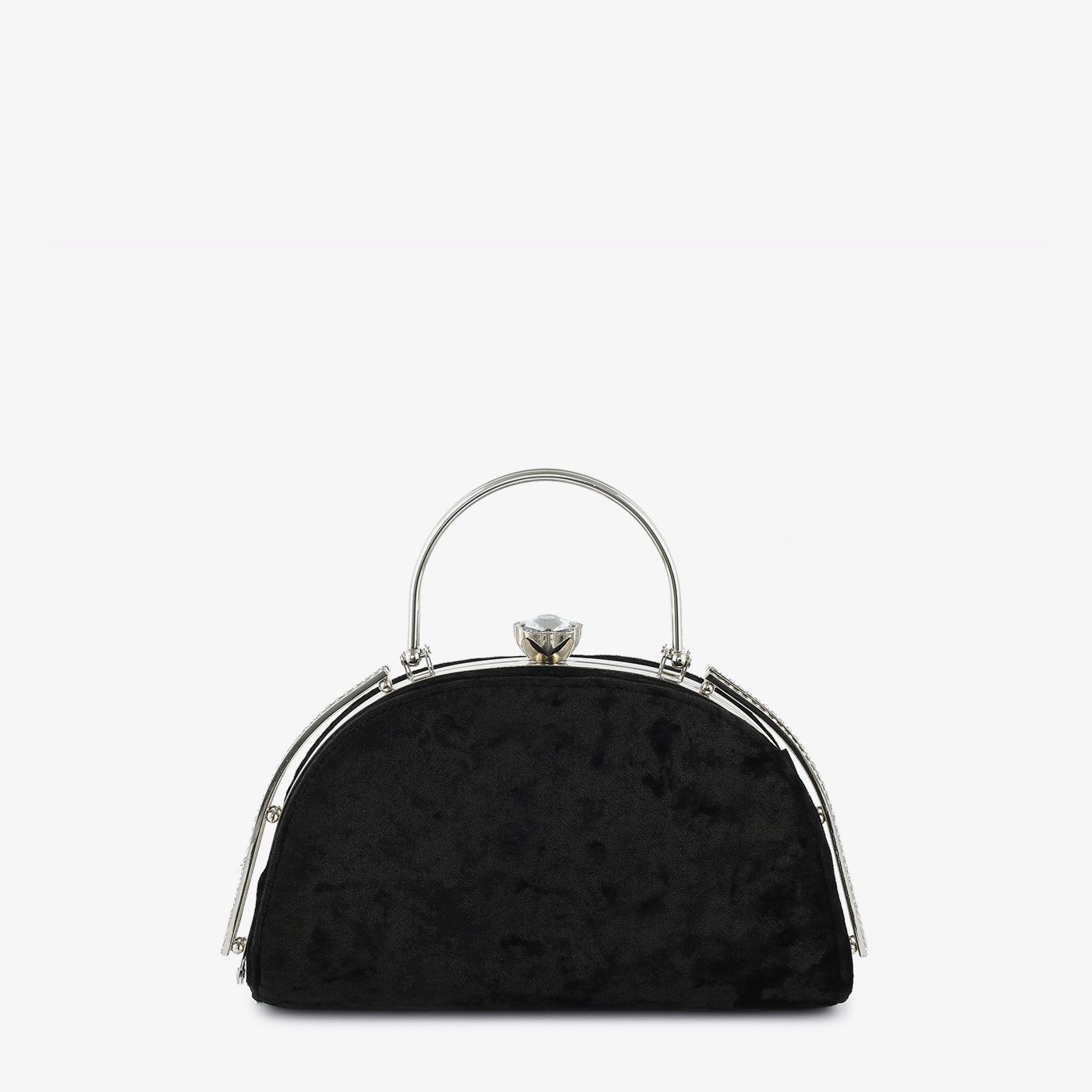 This dome-shaped design features a smooth finish with a crown-inspired clasp. Its structured form and metallic handle add sophistication and a regal touch.