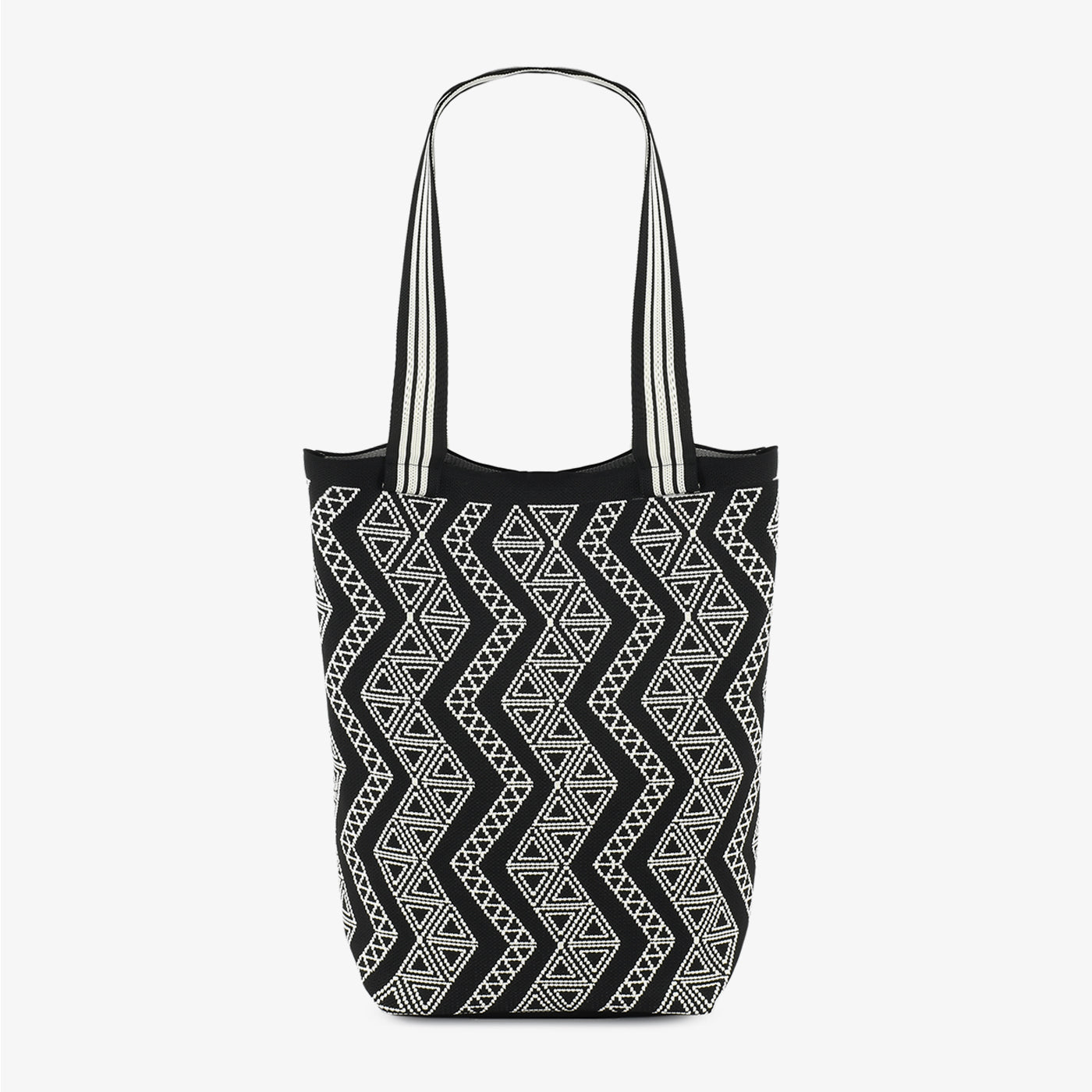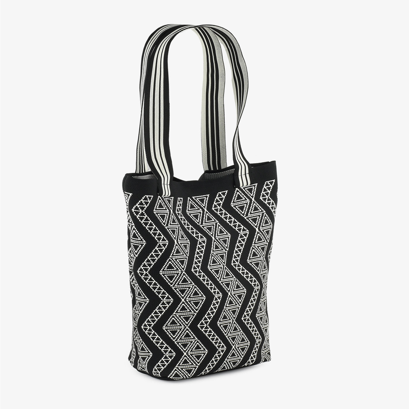 A stylish tote featuring bold geometric zigzag embroidery that adds a touch of artistry to your everyday look. Spacious and durable, it’s perfect for work, travel, or casual outings. Its sturdy handles ensure all-day comfort and convenience.