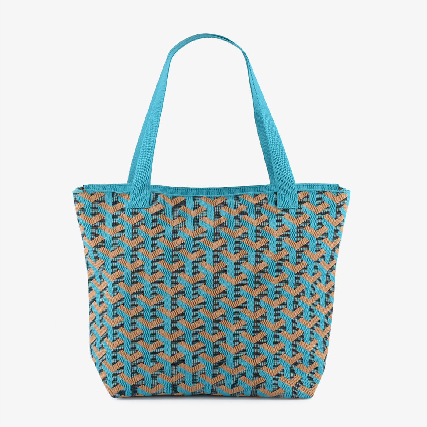 A stylish tote with a bold interlocking geometric pattern that gives it a modern edge. Designed for everyday use, it offers ample space for all essentials while staying lightweight and...