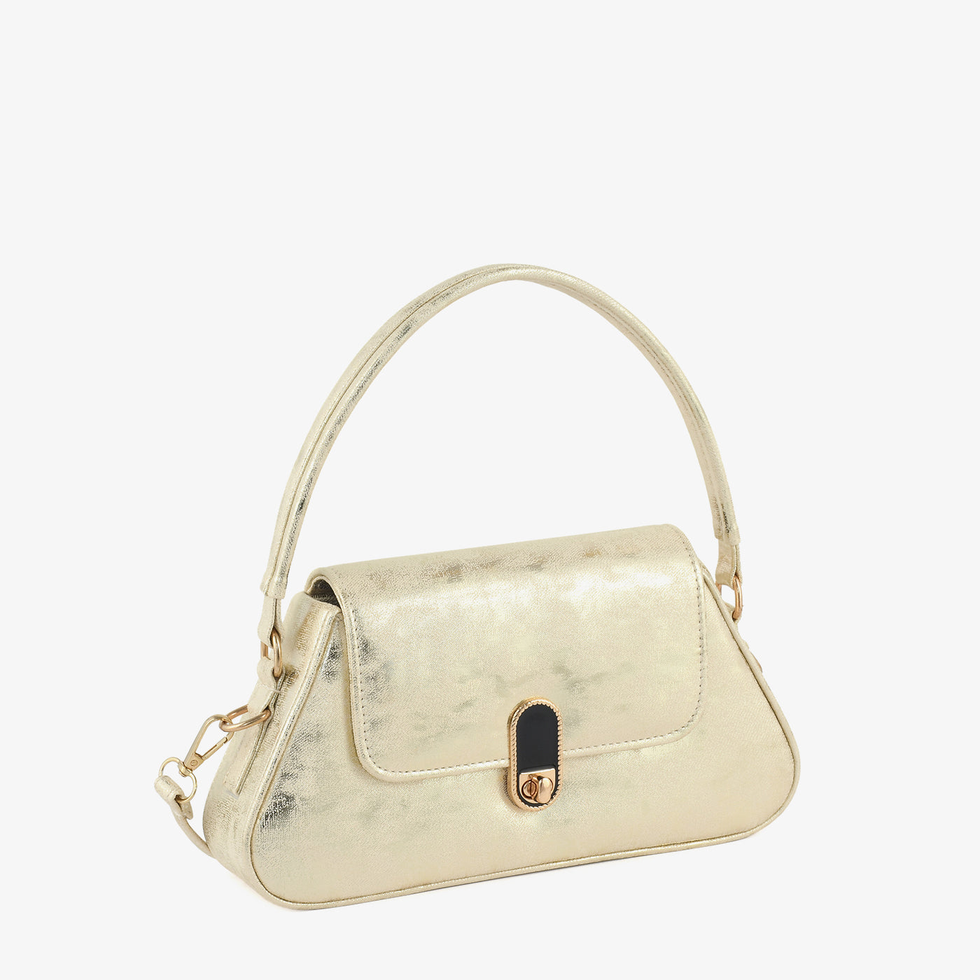 A modern shoulder bag with a softly sculpted silhouette and a metallic twist-lock accent. Compact yet stylish, it’s perfect for day-to-night versatility.