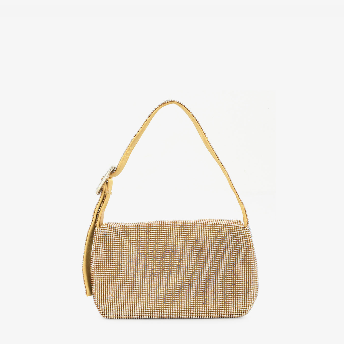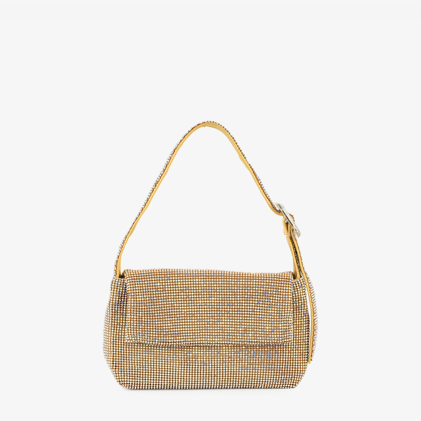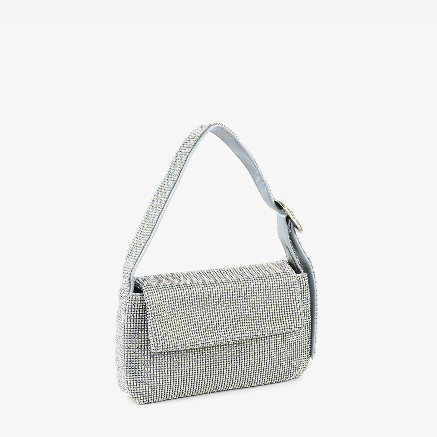 A glamorous shoulder bag adorned with crystal detailing throughout. Compact yet striking, it’s designed to add sparkle to evening outfits.