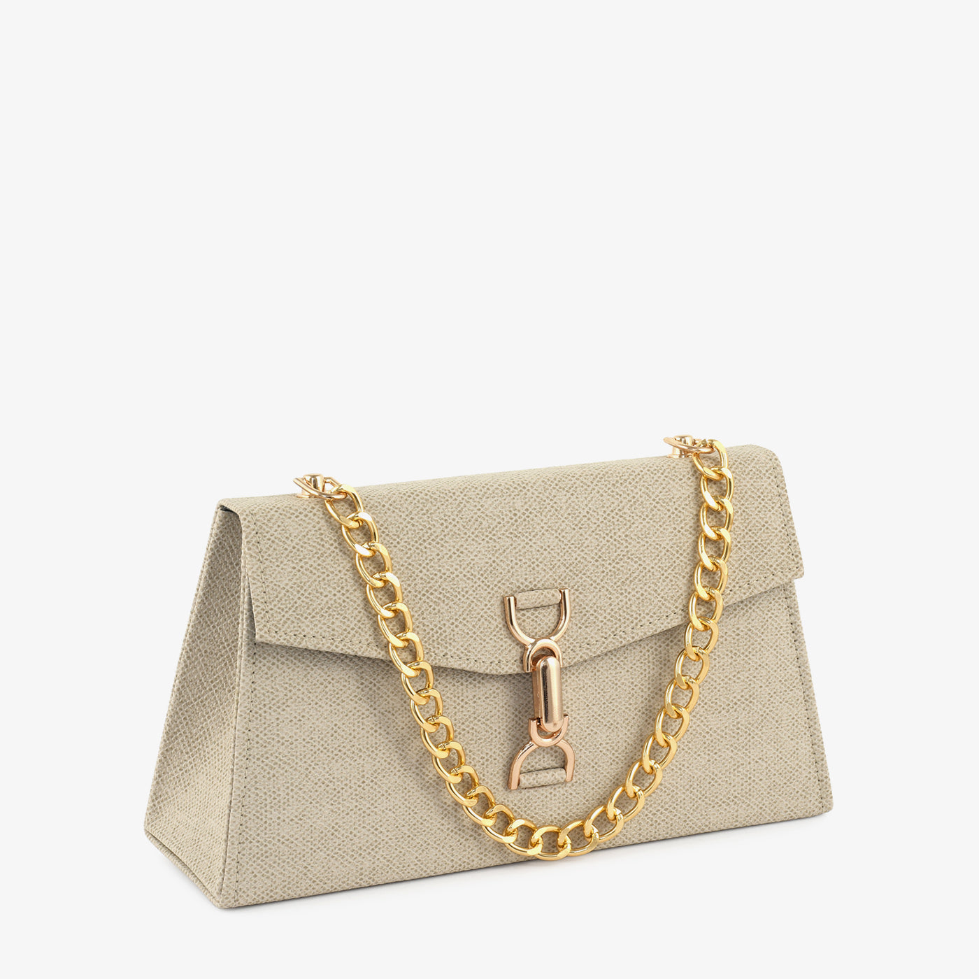 The Textured Charm Shoulder Bag offers a blend of classic design and modern detail. Crafted with a unique textured material, it provides a refined tactile experience. The gold chain and hardware add a touch of sophisticated elegance. This shoulder bag is perfect for carrying your essentials in style, making it a versatile addition to your wardrobe.