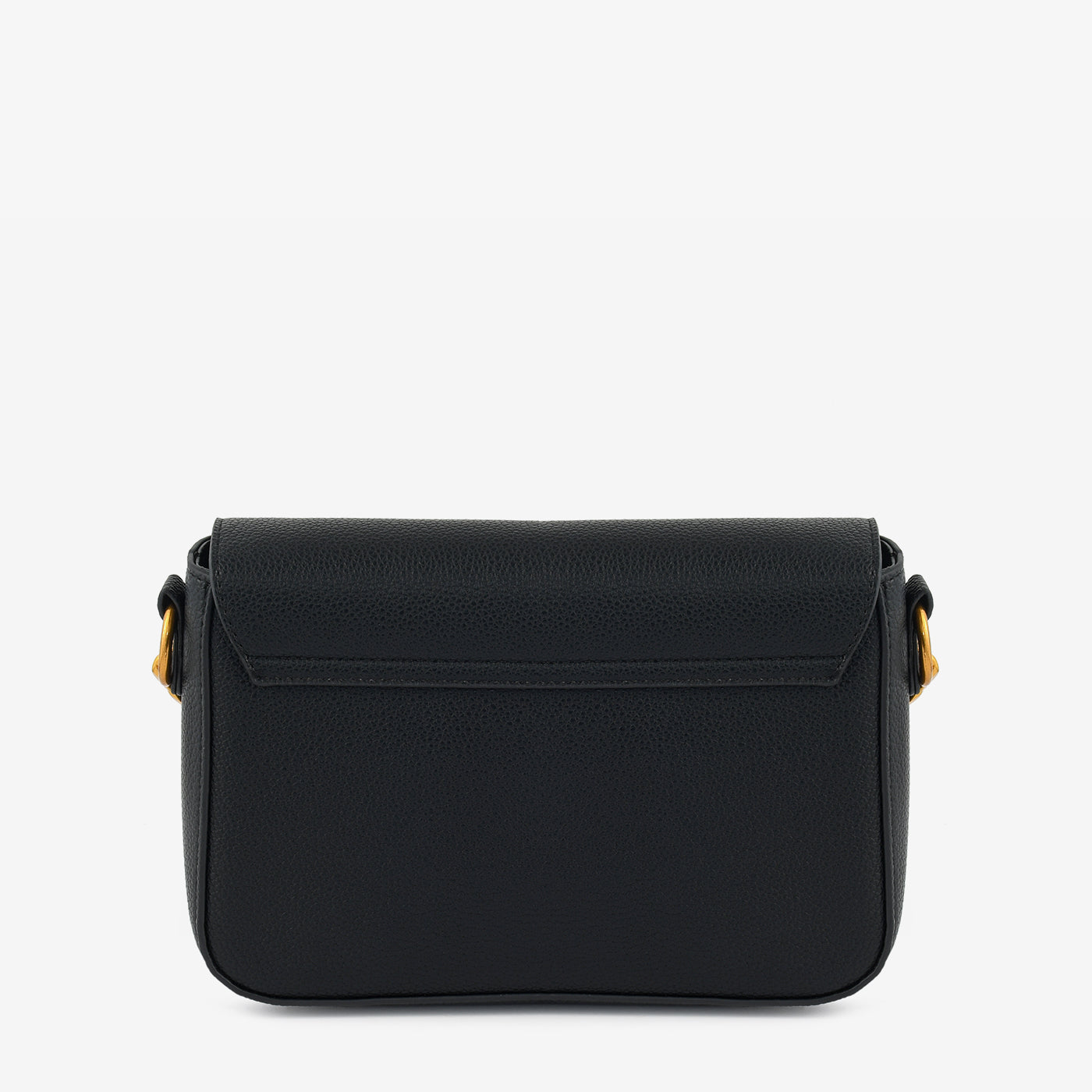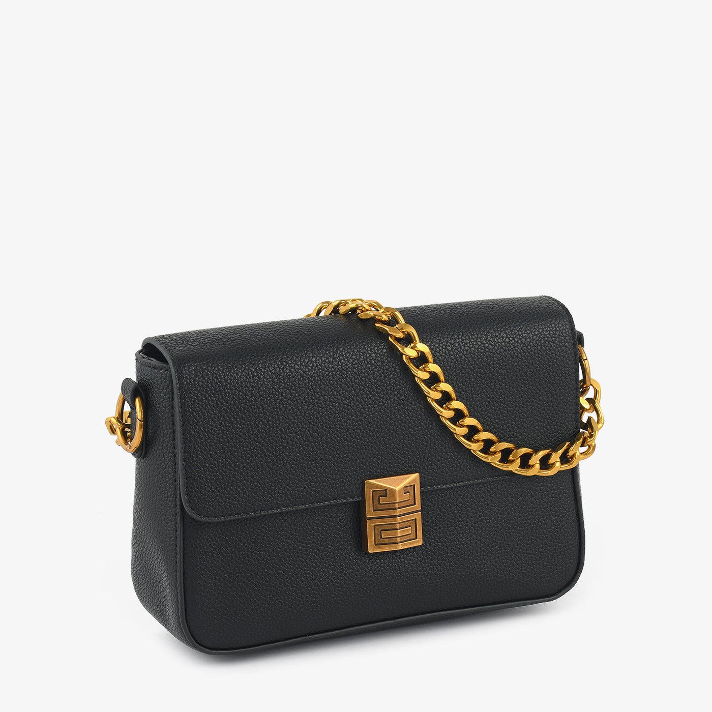 This sleek bag features a structured silhouette with a bold metallic chain strap. Its minimal design and elegant clasp make it a timeless choice.