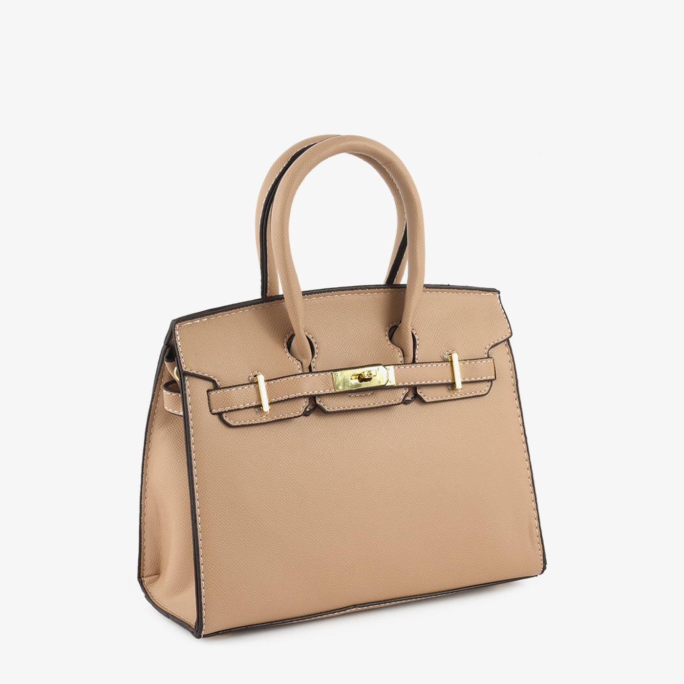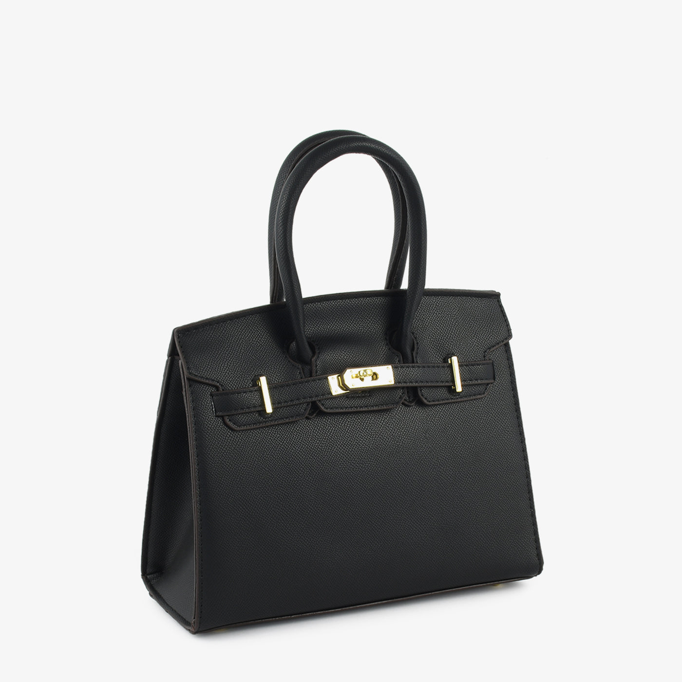 A timeless handbag crafted with a classic top-handle design and enhanced by a polished metallic lock. Structured and elegant, it’s a statement piece for refined occasions.