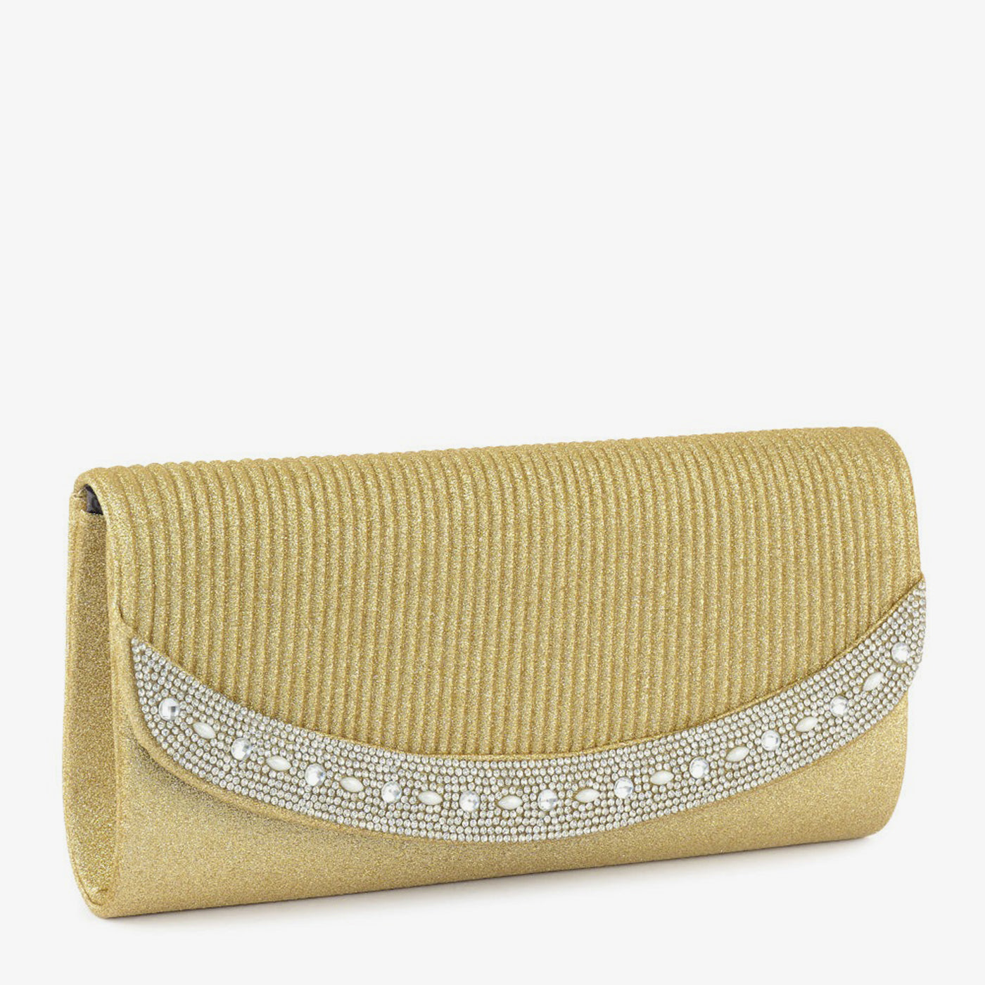 Introducing Sparkle Stone Clutch, an exquisite accessory designed to elevate your look for any occasion. Crafted from durable textile, this stylish clutch features a soft textile lining and is adorned with stunning stones that add a touch of elegance. Its glittery finish ensures you stand out at every event. With ample space for your essentials, this clutch perfectly combines fashion and functionality. The fixed strap provides both convenience and sophistication. Make a statement with SparkleStone Clutch, your ideal companion for nights out and special events.