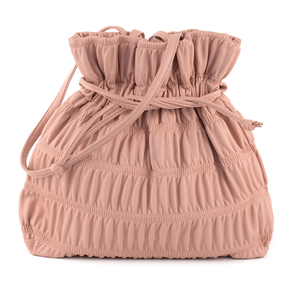Distinctive and expressive, this ruched bag features a softly sculpted form and drawstring charm that’s both fashion-forward and functional.