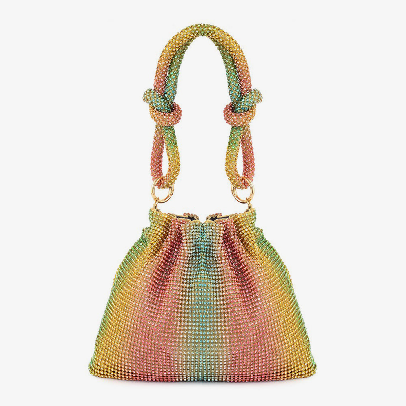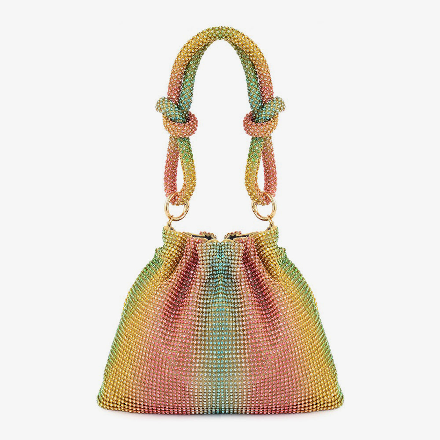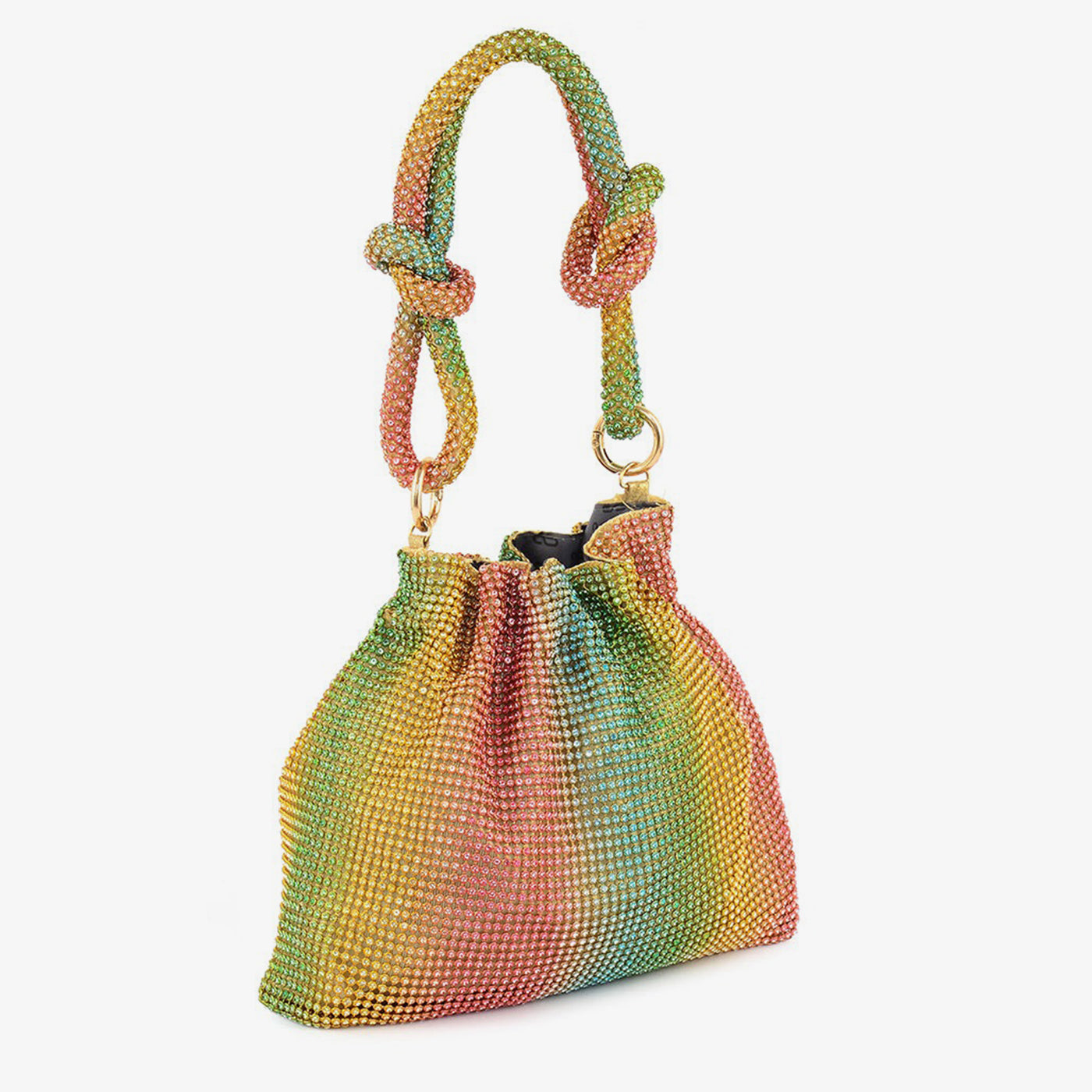 Styling Tip: This eye-catching pouch is perfect for parties or adding a touch of sparkle to evening outfits. Carry it as a handheld bag or by its distinctive handles.