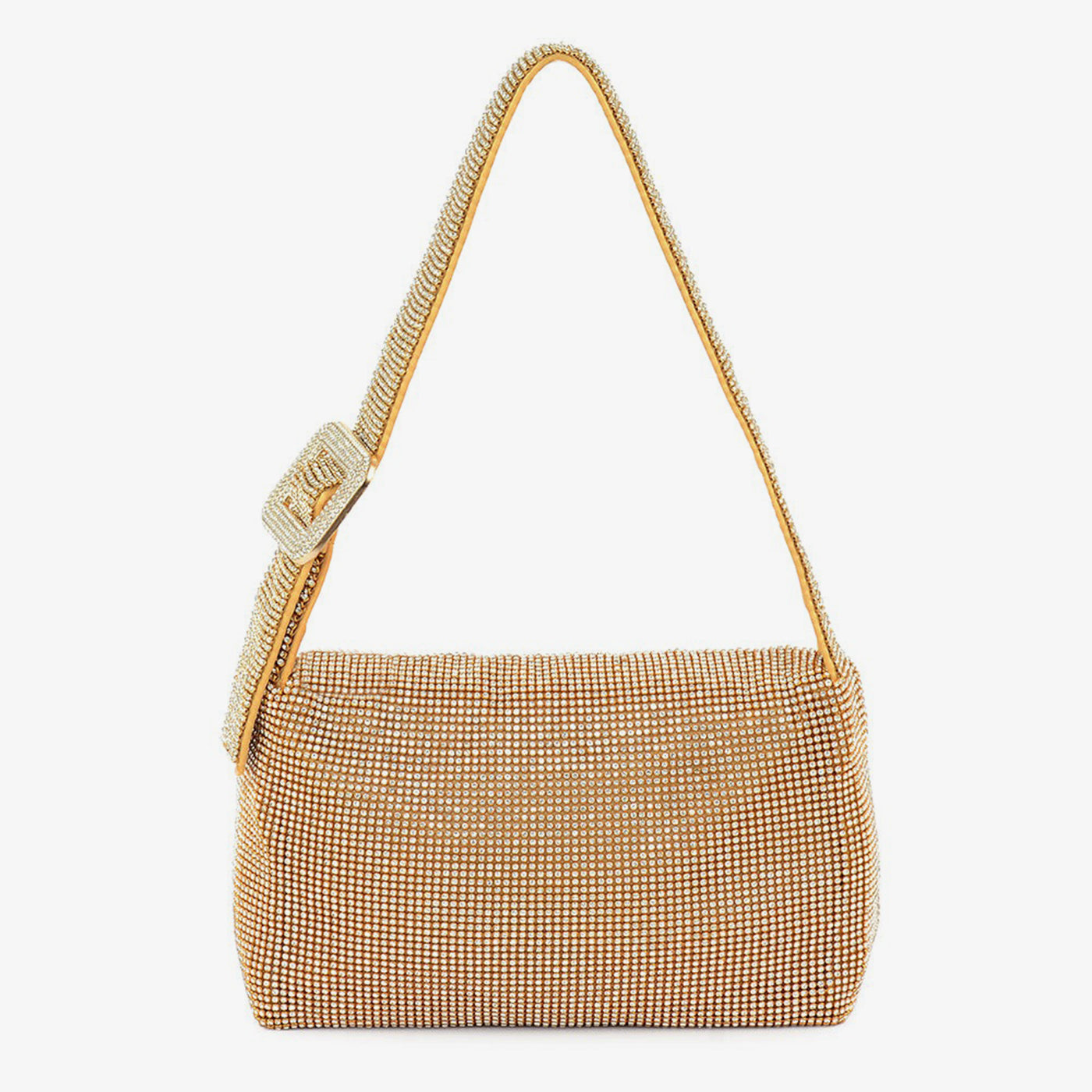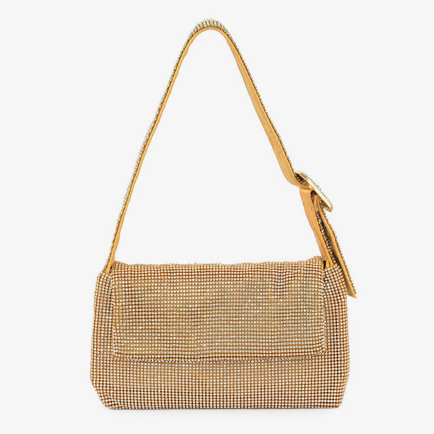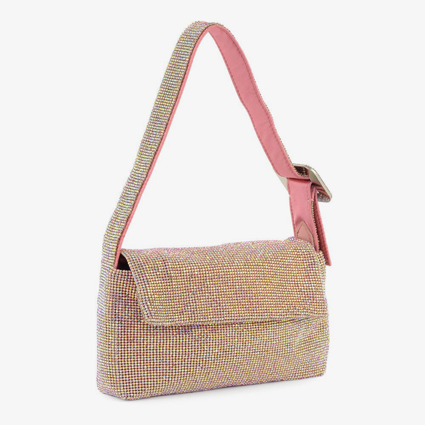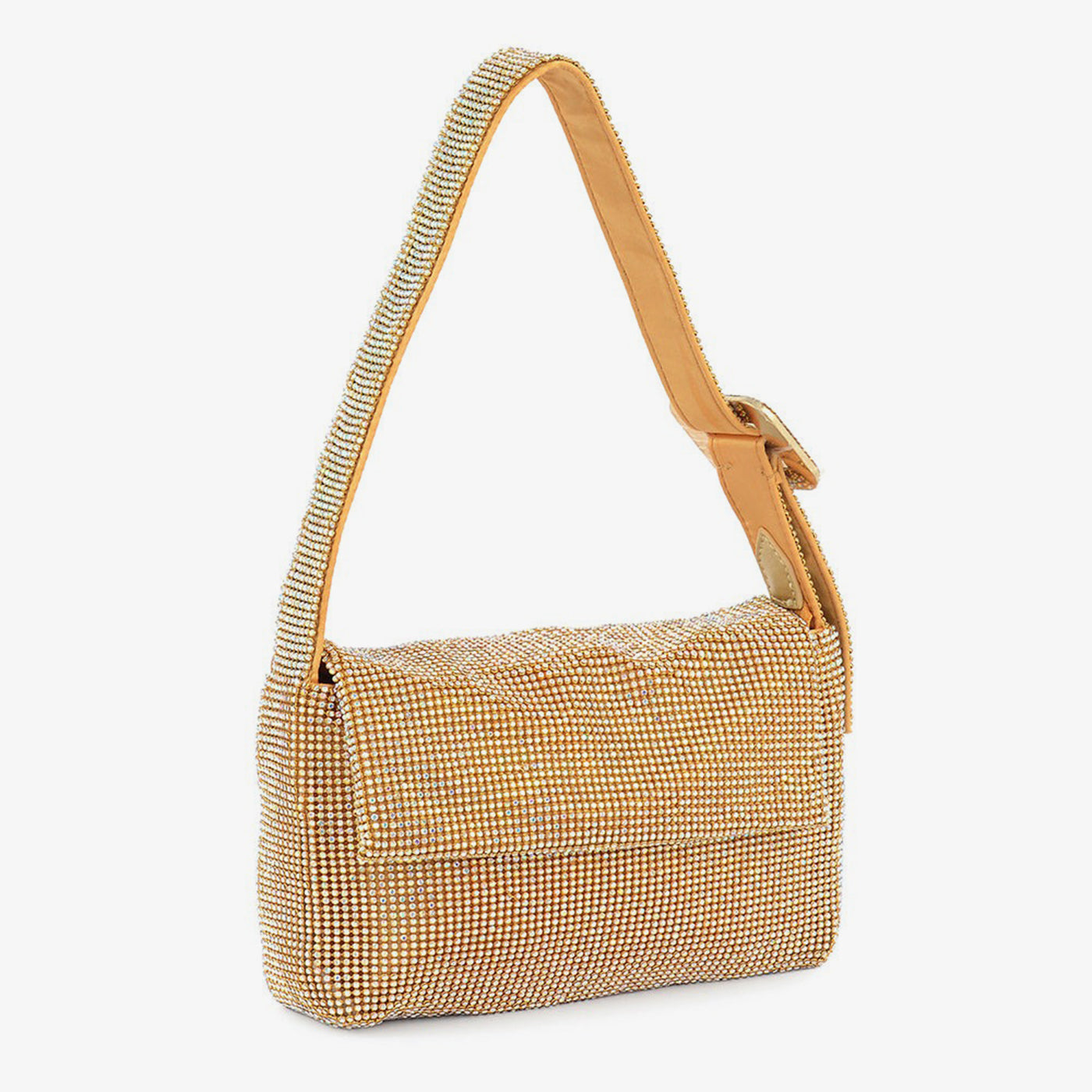 Dazzle and delight with the Starlight Shimmer Shoulder Bag. This captivating bag is covered in shimmering crystals, catching the light from every angle. The classic baguette shape gets a glamorous update, making it the perfect accessory for your most special occasions.