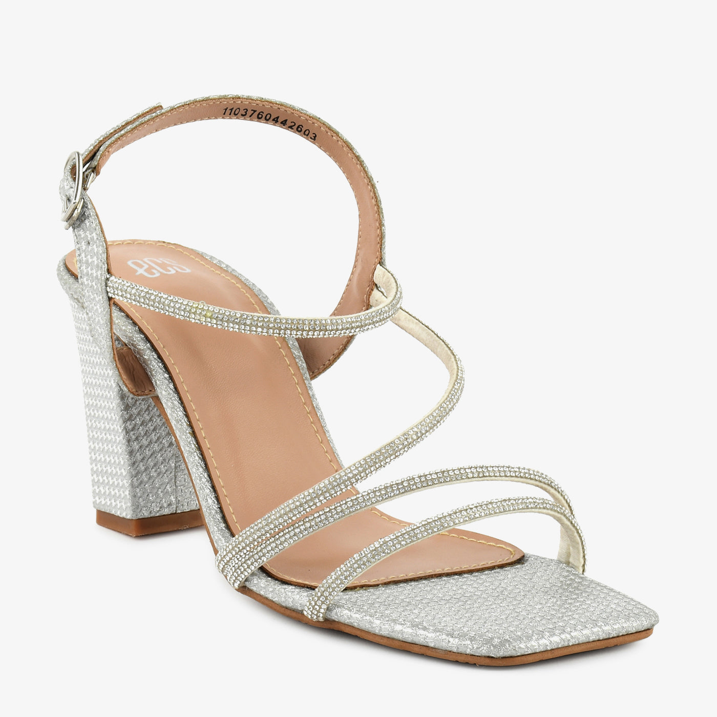 A statement sandal designed with slim, sleek straps and a tall structured heel that adds height without compromising comfort. The minimalist silhouette offers a modern, sophisticated appeal ideal for parties...