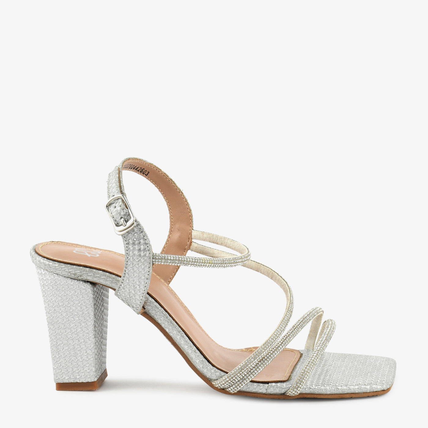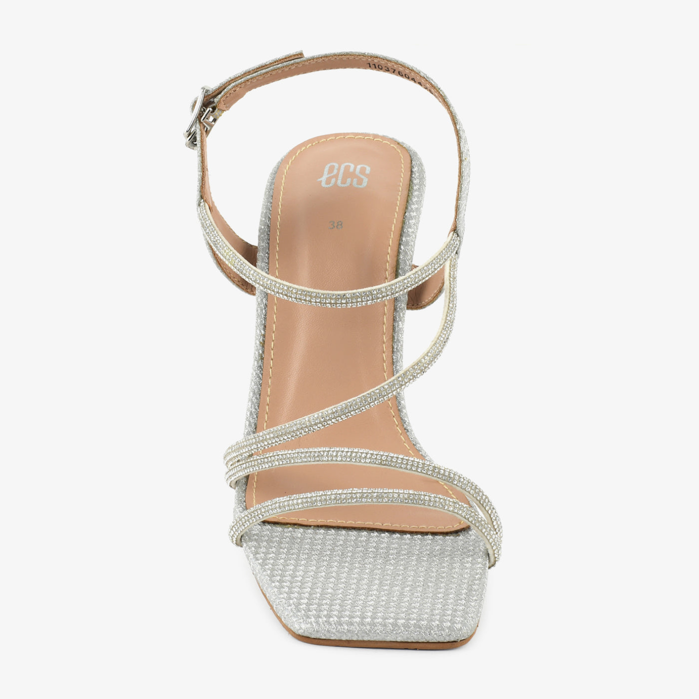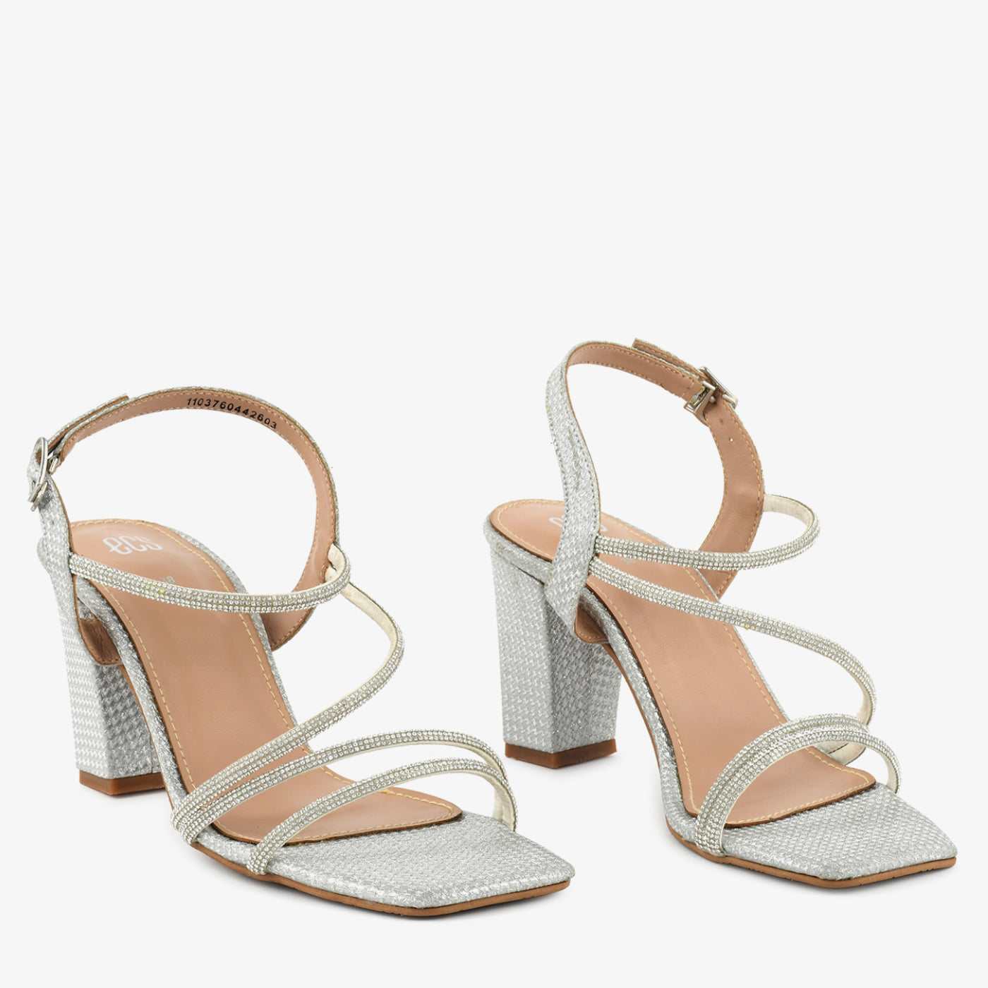 A statement sandal designed with slim, sleek straps and a tall structured heel that adds height without compromising comfort. The minimalist silhouette offers a modern, sophisticated appeal ideal for parties or formal evenings.