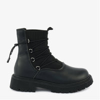 - Feature: Chunky Sole, Lace-Up Detail, Knit Cuff