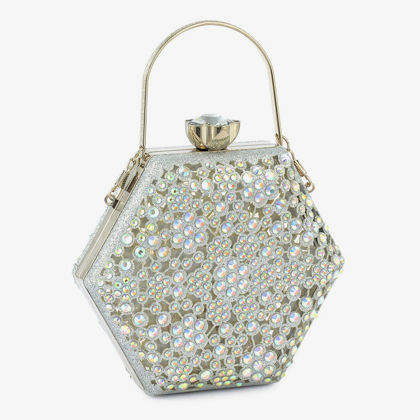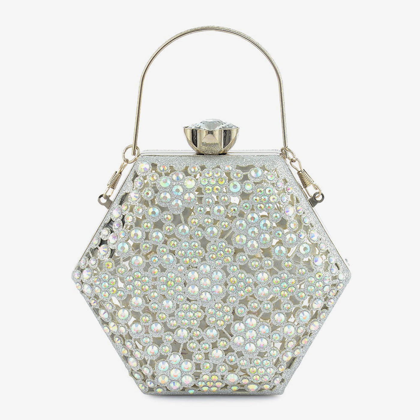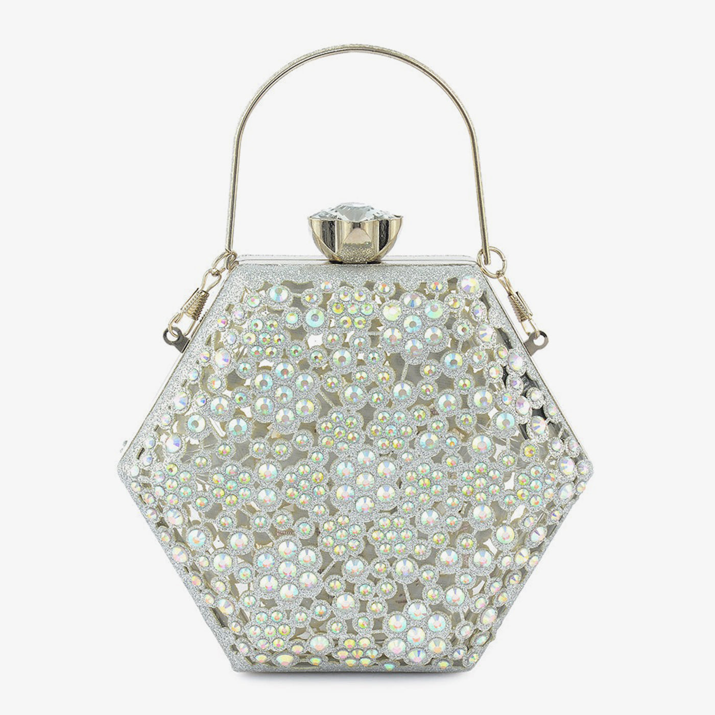 Introducing Glitter Stone Clutch, a dazzling accessory that adds a touch of sparkle to any outfit. Crafted from high-quality PU, this clutch features a durable plastic lining that ensures longevity. The glittery finish catches the light beautifully, making it perfect for special occasions or nights out. Adorned with eye-catching stones, Glitter Stone Clutch stands out as a statement piece. With a height of 13 cm and a width of 15 cm, it provides ample space for your essentials while maintaining a compact silhouette. The fixed strap allows for easy carrying, making this clutch both stylish and practical.