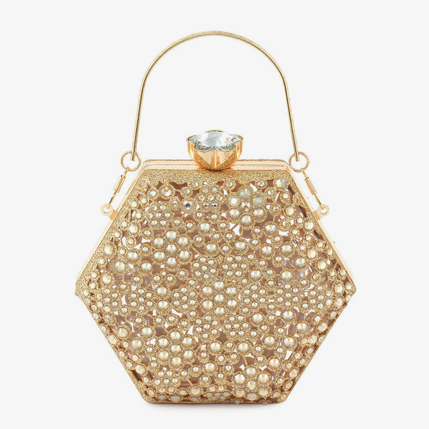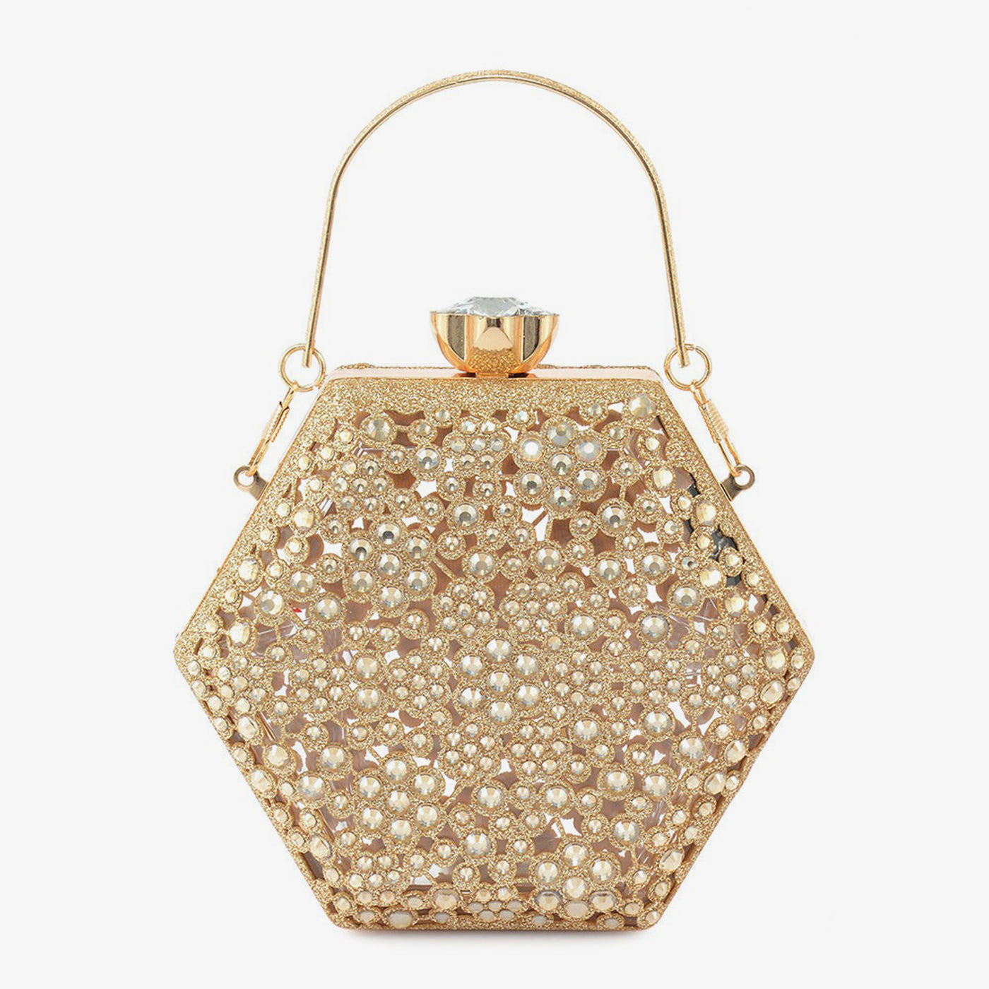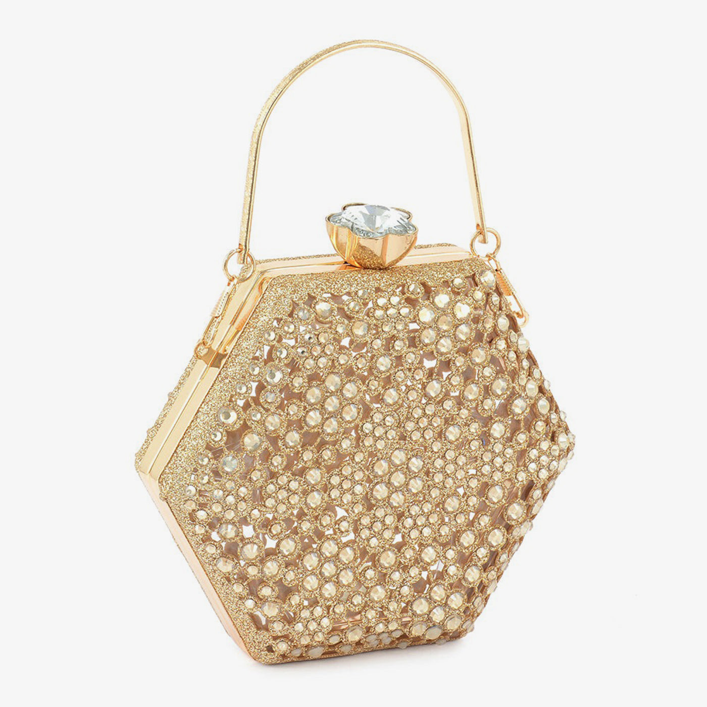 Introducing Glitter Stone Clutch, a dazzling accessory that adds a touch of sparkle to any outfit. Crafted from high-quality PU, this clutch features a durable plastic lining that ensures longevity. The glittery finish catches the light beautifully, making it perfect for special occasions or nights out. Adorned with eye-catching stones, Glitter Stone Clutch stands out as a statement piece. With a height of 13 cm and a width of 15 cm, it provides ample space for your essentials while maintaining a compact silhouette. The fixed strap allows for easy carrying, making this clutch both stylish and practical.