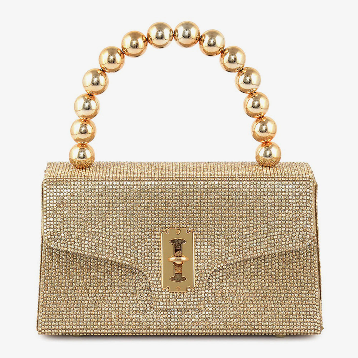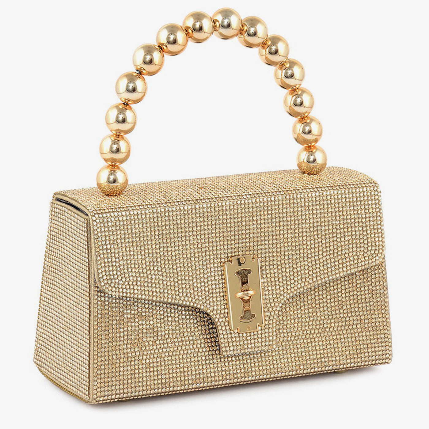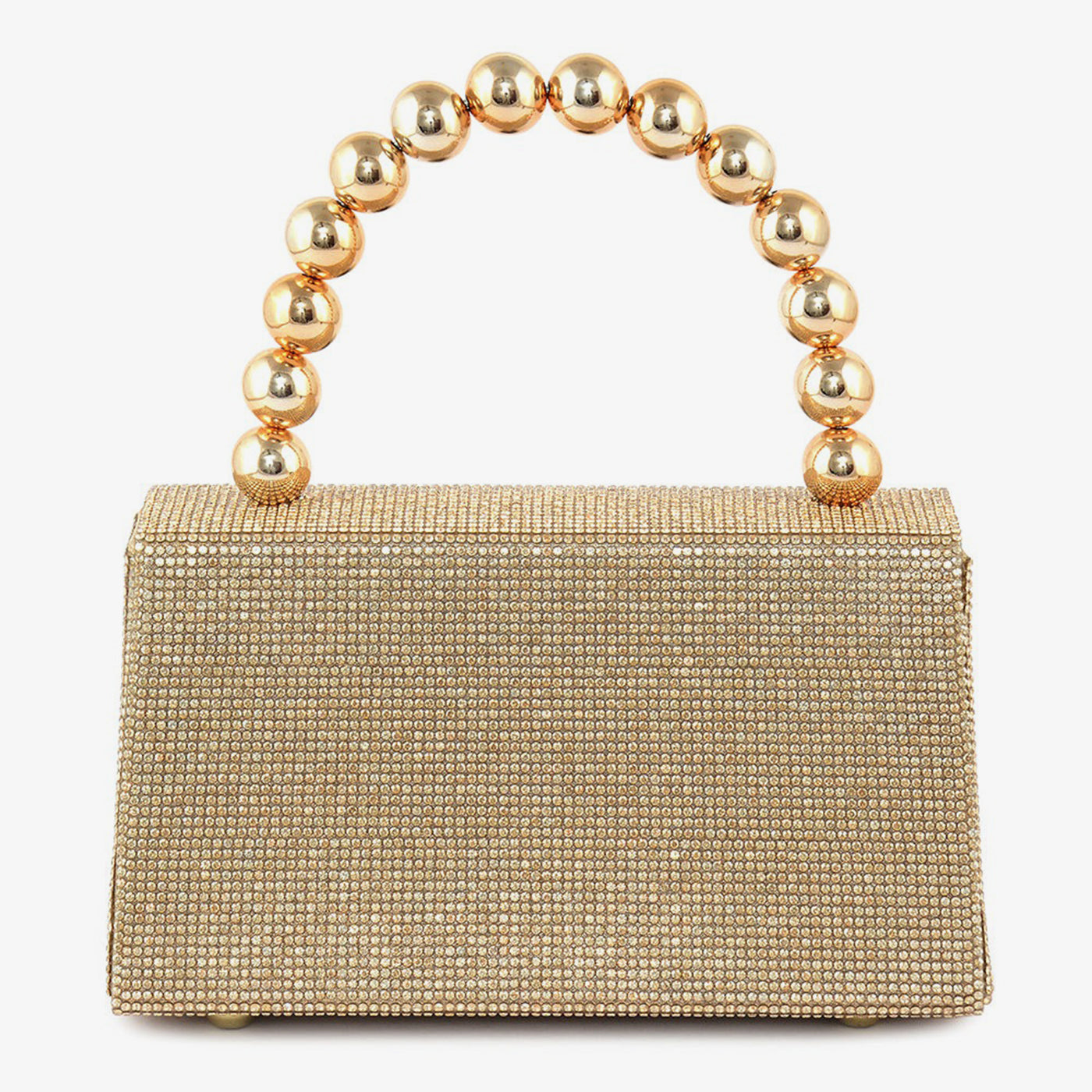 Introducing Gem Handle Clutch, a stunning accessory that combines style and sophistication. Crafted from high-quality textile, this clutch features a luxurious textile lining that enhances its overall elegance. The shiny...