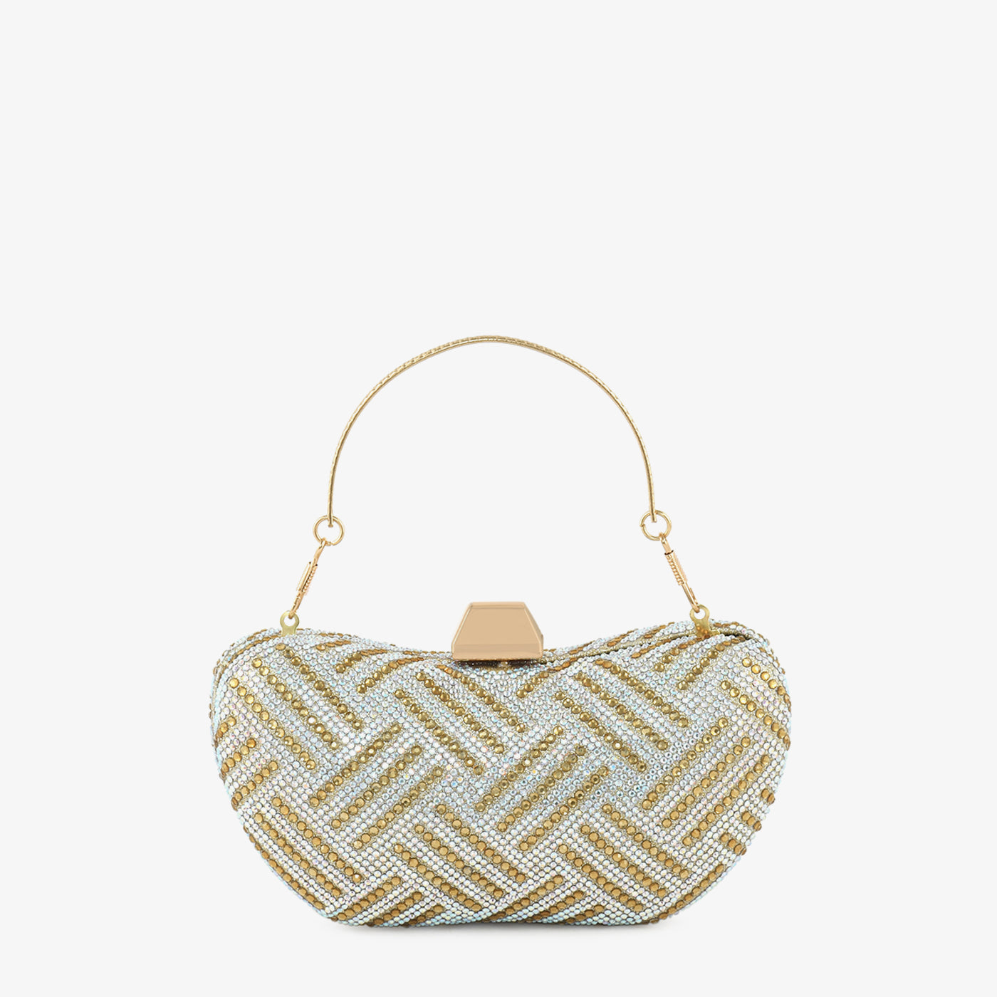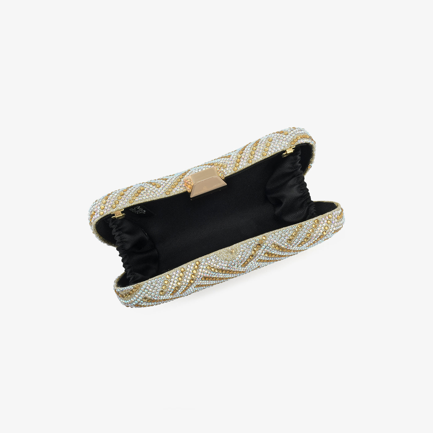 Luxe Weave is an artful blend of shimmer and shape—featuring a structured curved silhouette adorned with dazzling crystal beadwork in a crisscross rhythm. Its golden top clasp and...