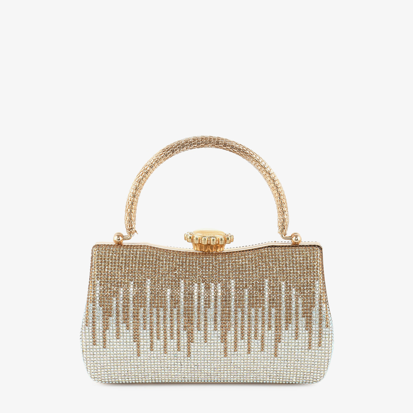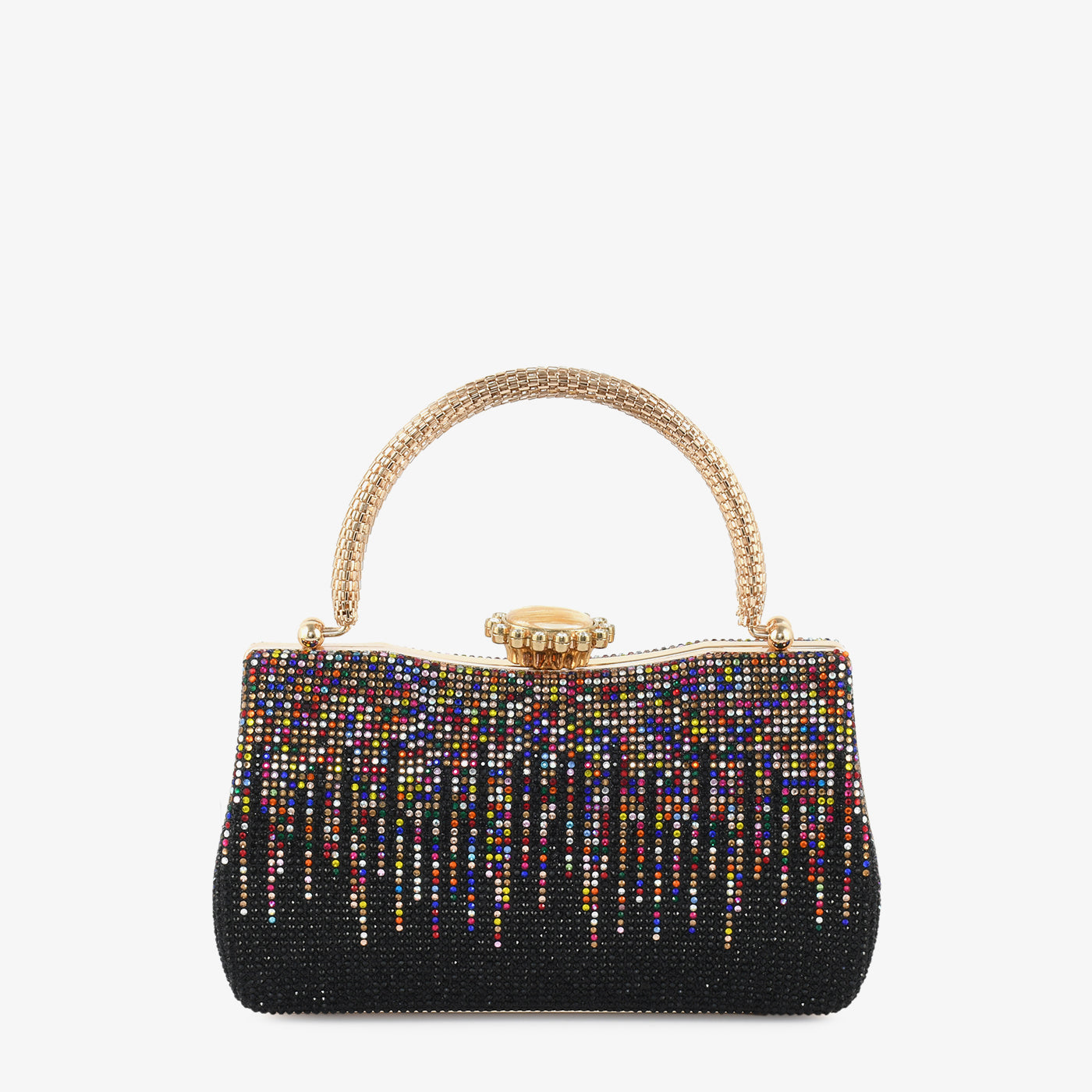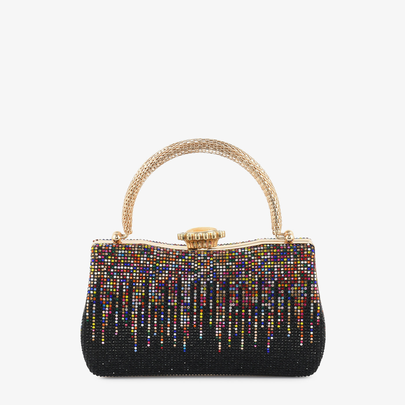 Where elegance meets extravagance—this graceful top-handle bag brings high drama with its ombré crystal fade and golden clasp. The curved frame silhouette adds a vintage nod while the...