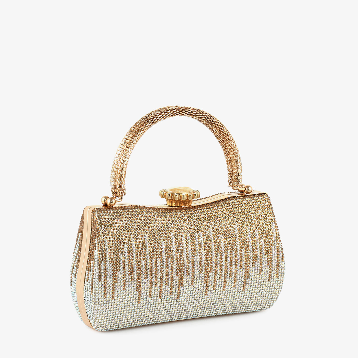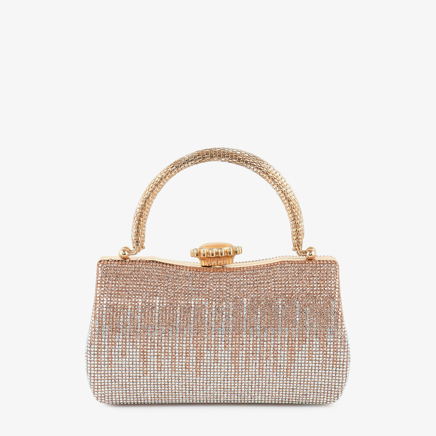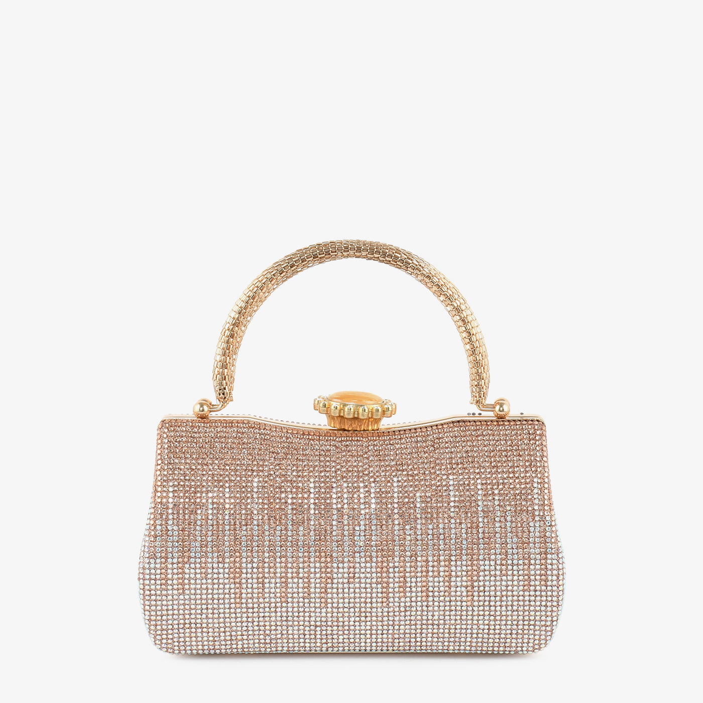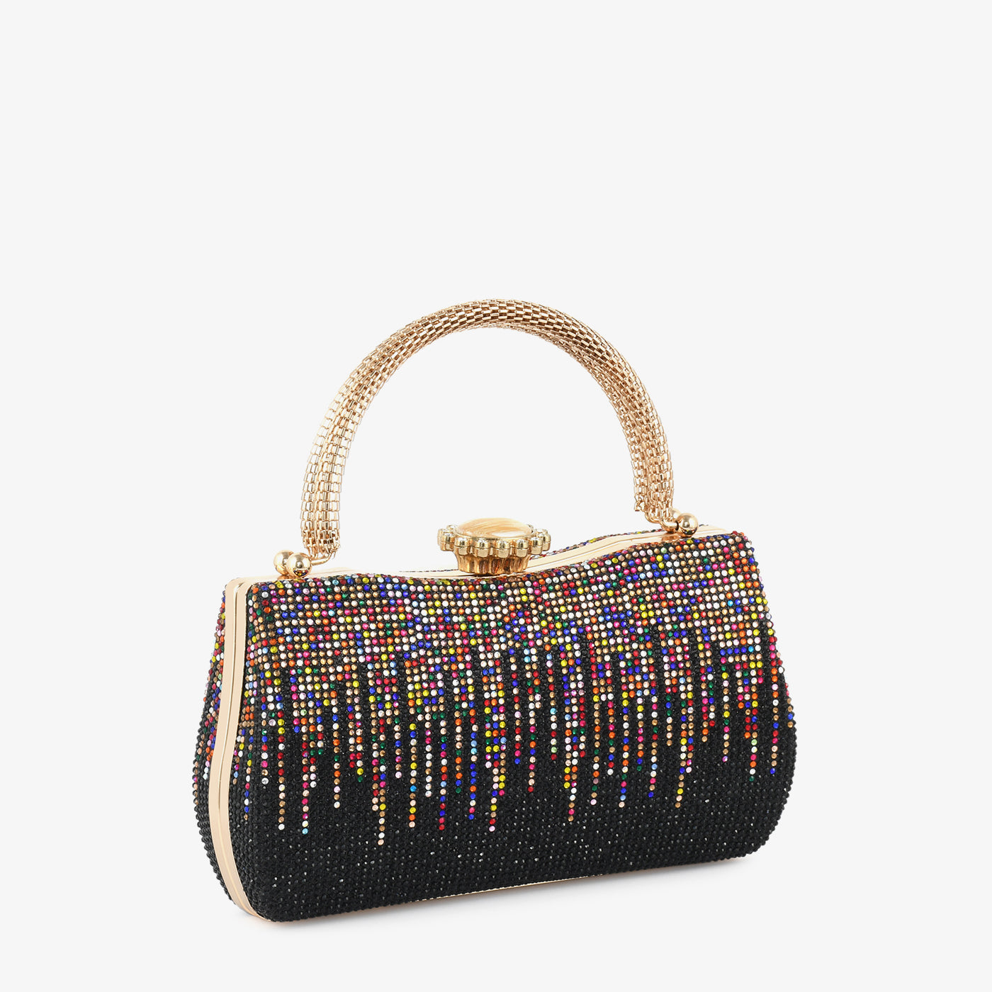 Where elegance meets extravagance—this graceful top-handle bag brings high drama with its ombré crystal fade and golden clasp. The curved frame silhouette adds a vintage nod while the...