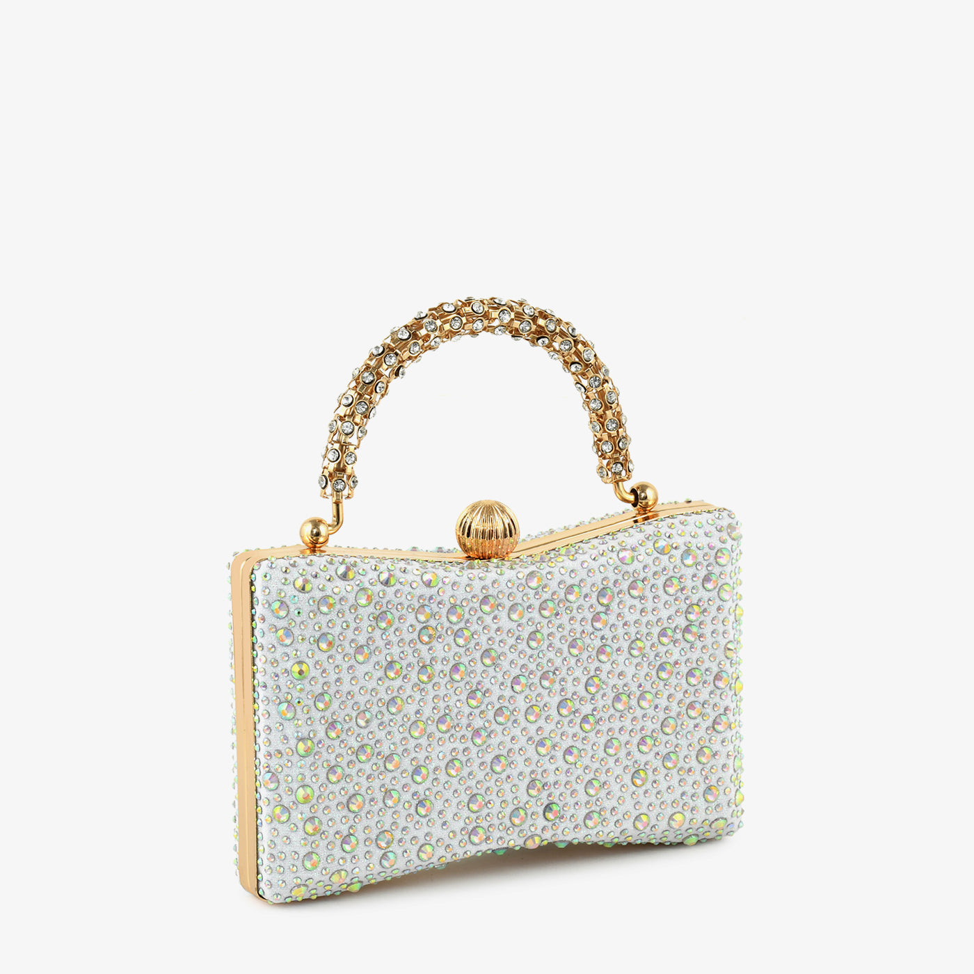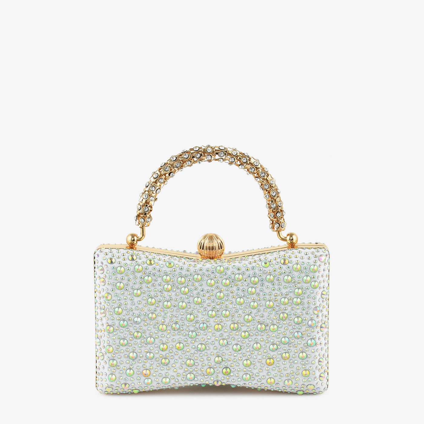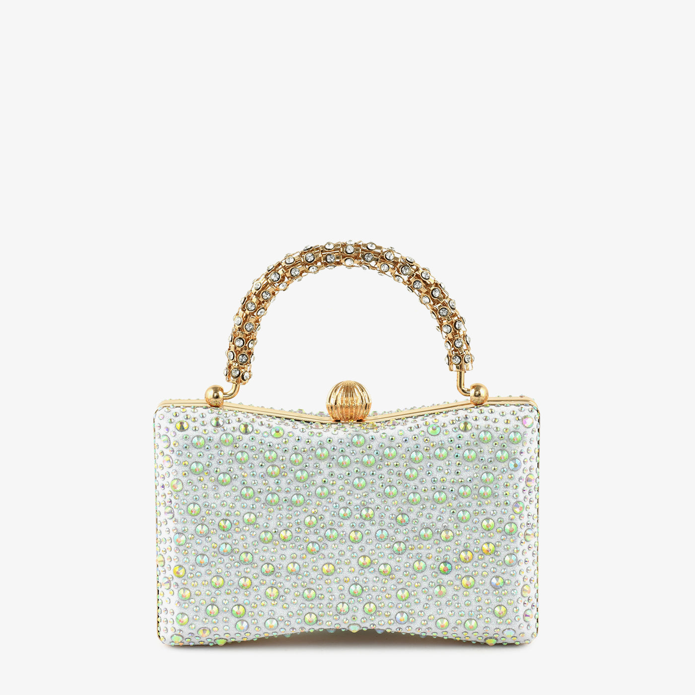 Add a touch of iridescent charm with the "Aurora Glow Clutch." Adorned with shimmering crystals and a beaded handle, it exudes elegance for any evening affair.