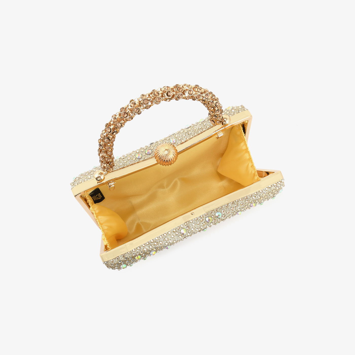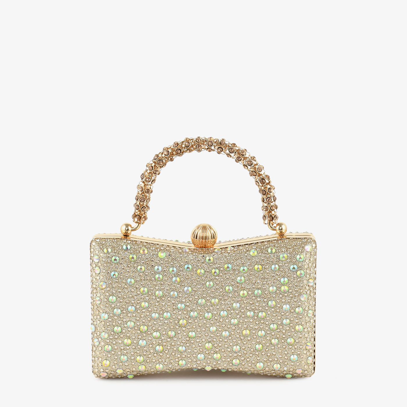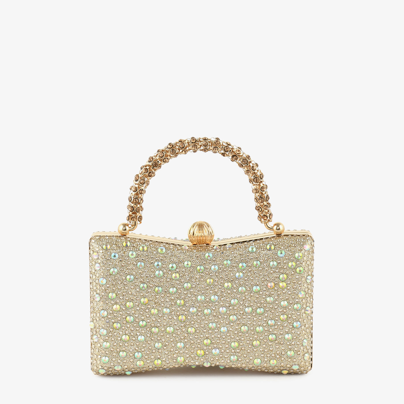 Add a touch of iridescent charm with the "Aurora Glow Clutch." Adorned with shimmering crystals and a beaded handle, it exudes elegance for any evening affair.