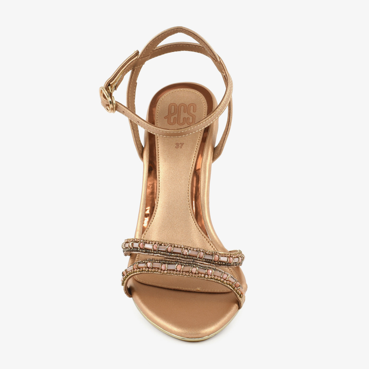 ...A delicately embellished sandal that blends elegance with comfort. The slim ankle strap and pointed heel enhance posture, while the sparkling detailing makes it perfect for festive and formal occasions.