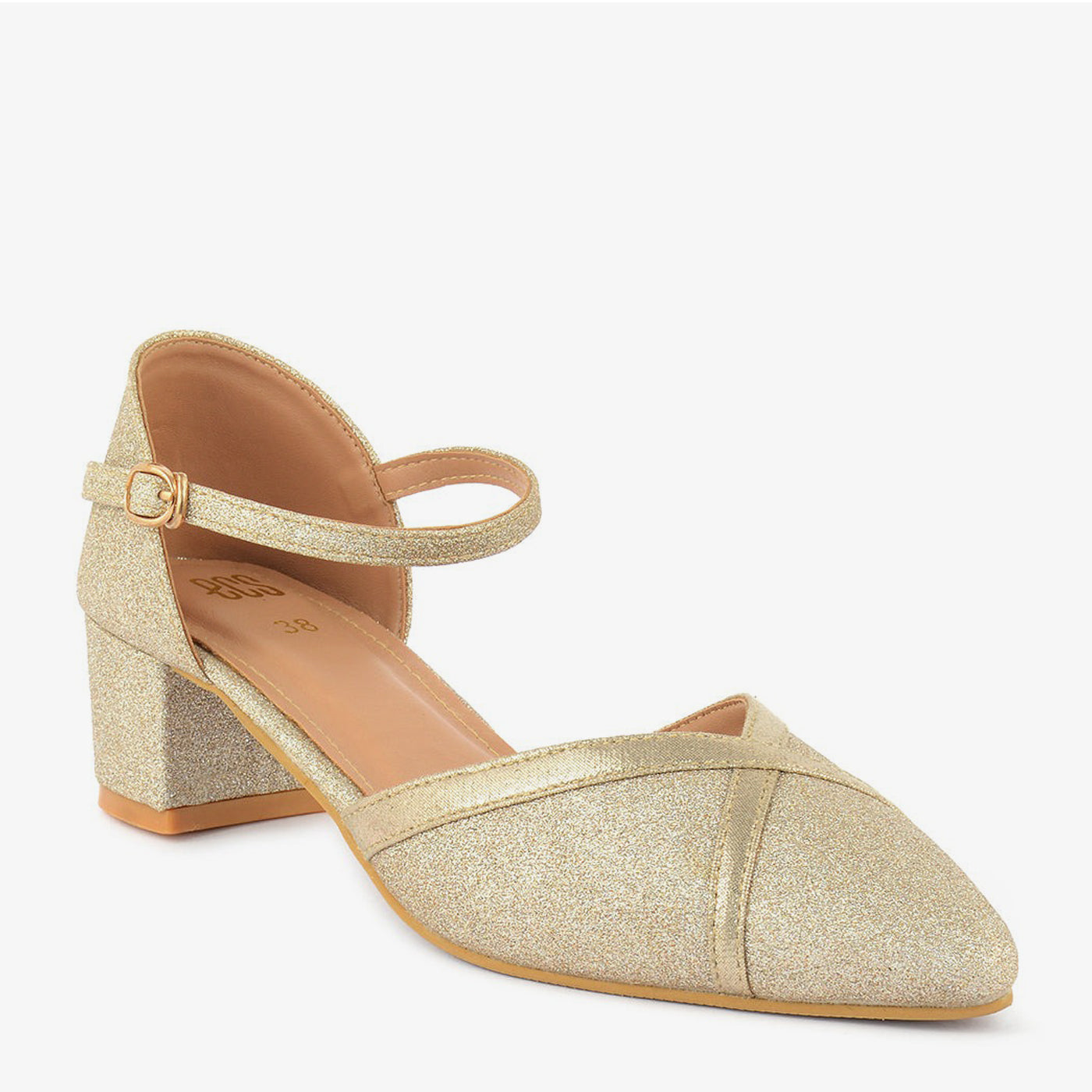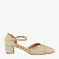 Elevate your style with the "Twinkling Star" heels. These glamorous heels feature a sparkling gold glitter upper that catches the light with every step. The comfortable block heel and adjustable ankle strap ensure all-day comfort and style.