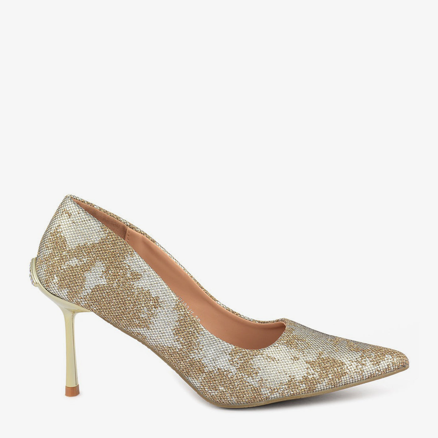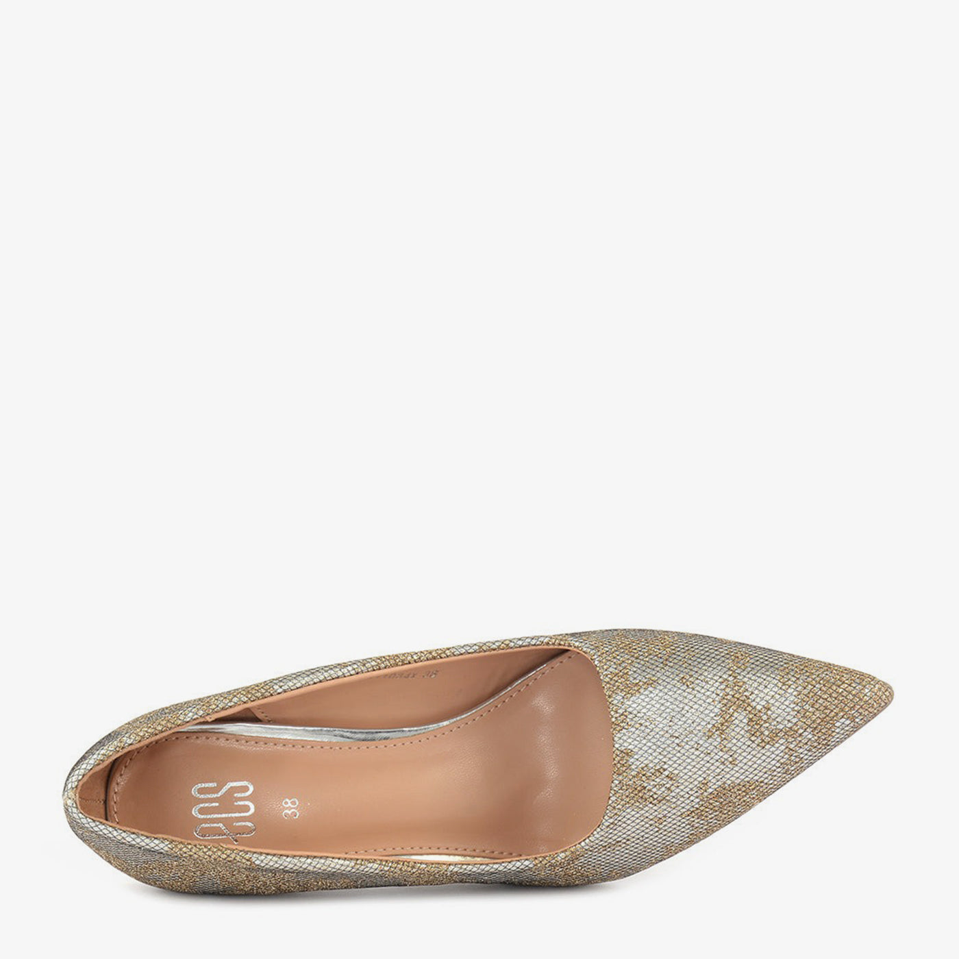 Designed with a striking gold-silver gradient and metallic heel, this pointed pump brings a dramatic flair. Ideal for evening functions or bridal receptions.