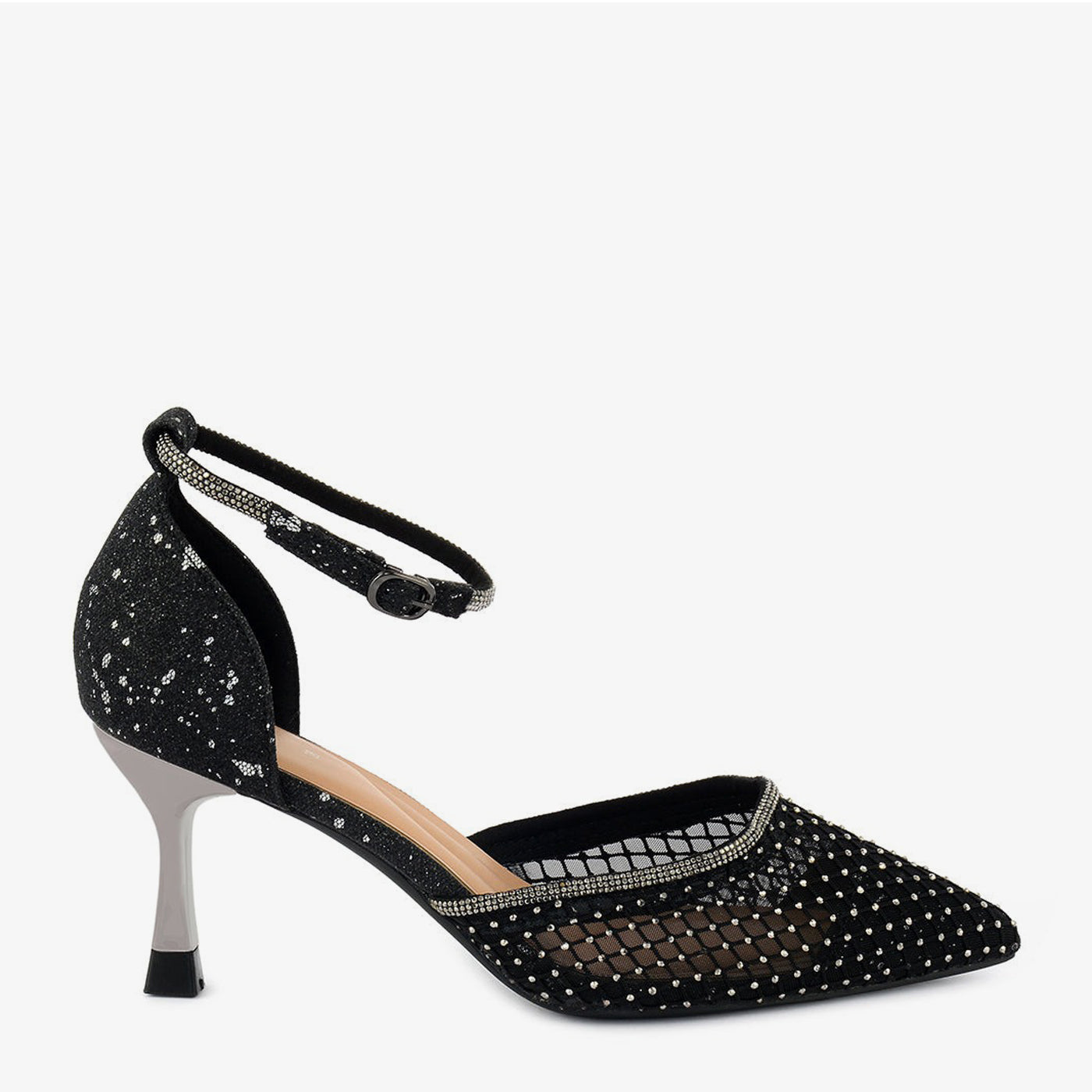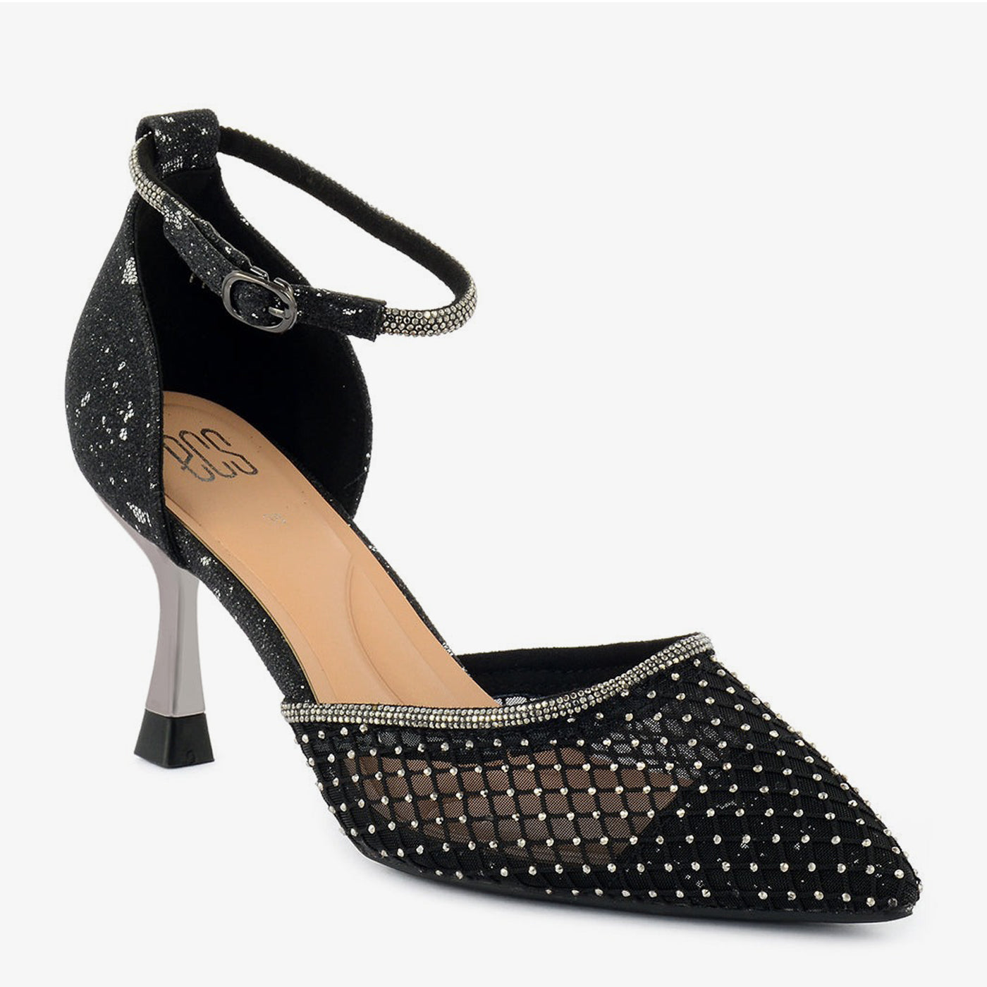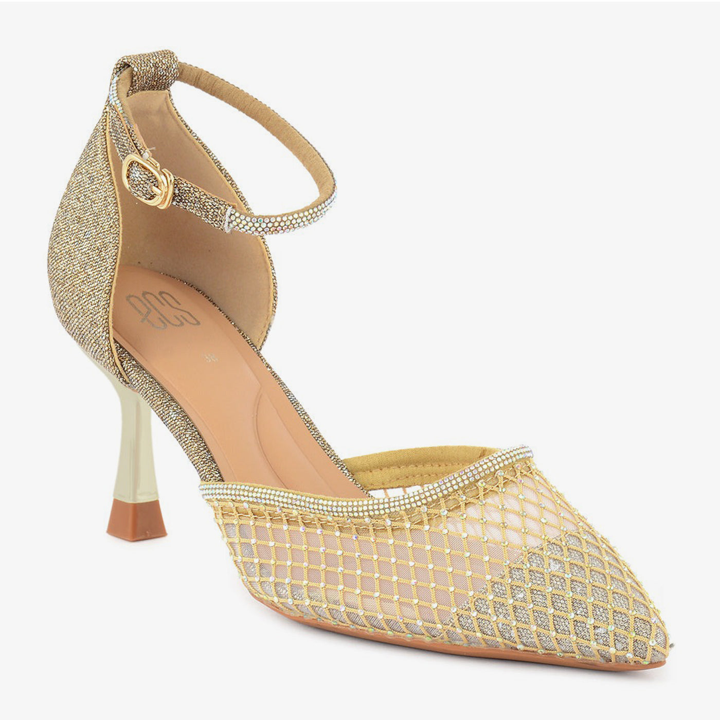These exquisite coat shoes are designed for dazzling elegance, featuring a pointed-toe silhouette adorned with shimmering crystal or diamante embellishments that catch the light with every movement. They include a delicate ankle strap for a secure fit and a slender high heel, perfect for formal occasions.