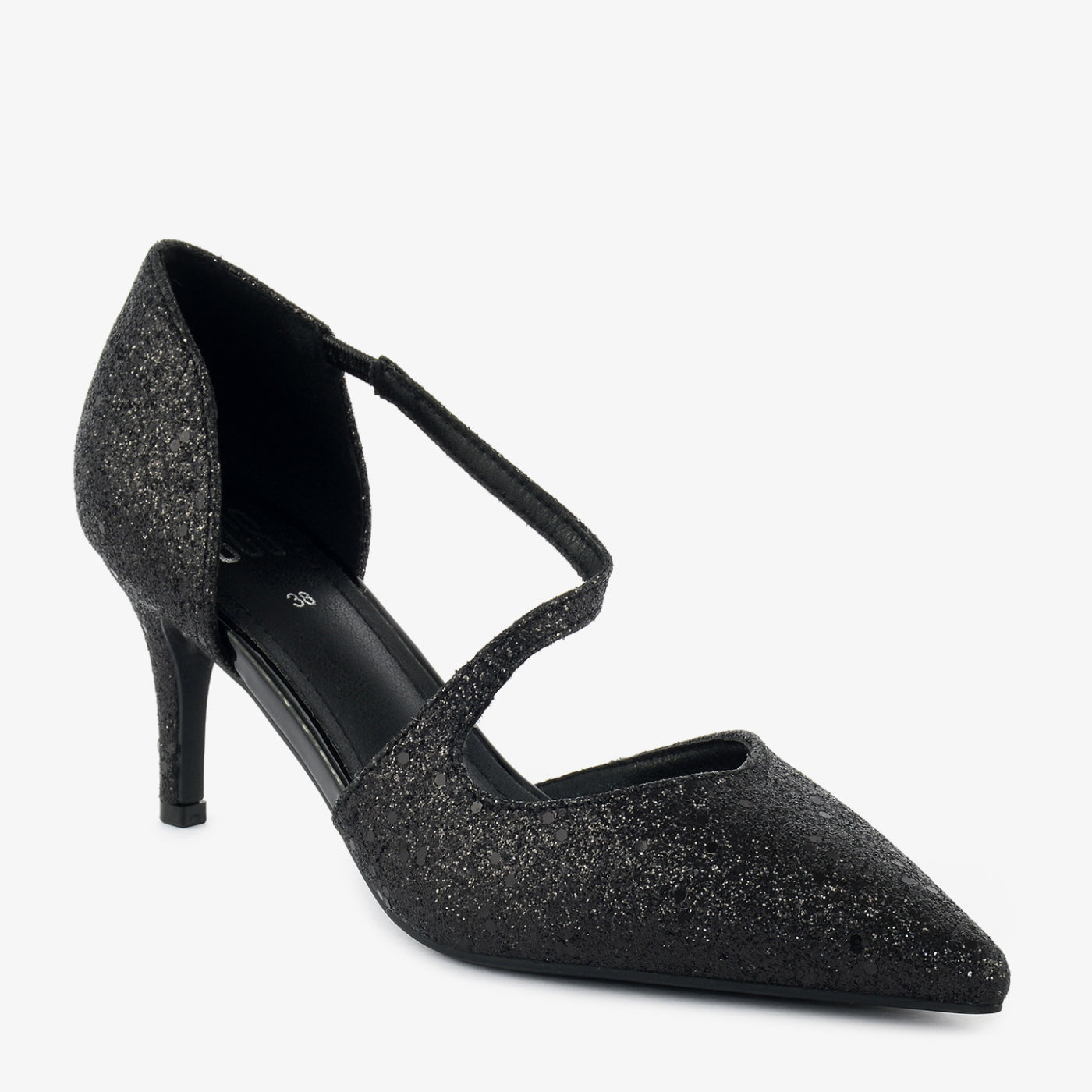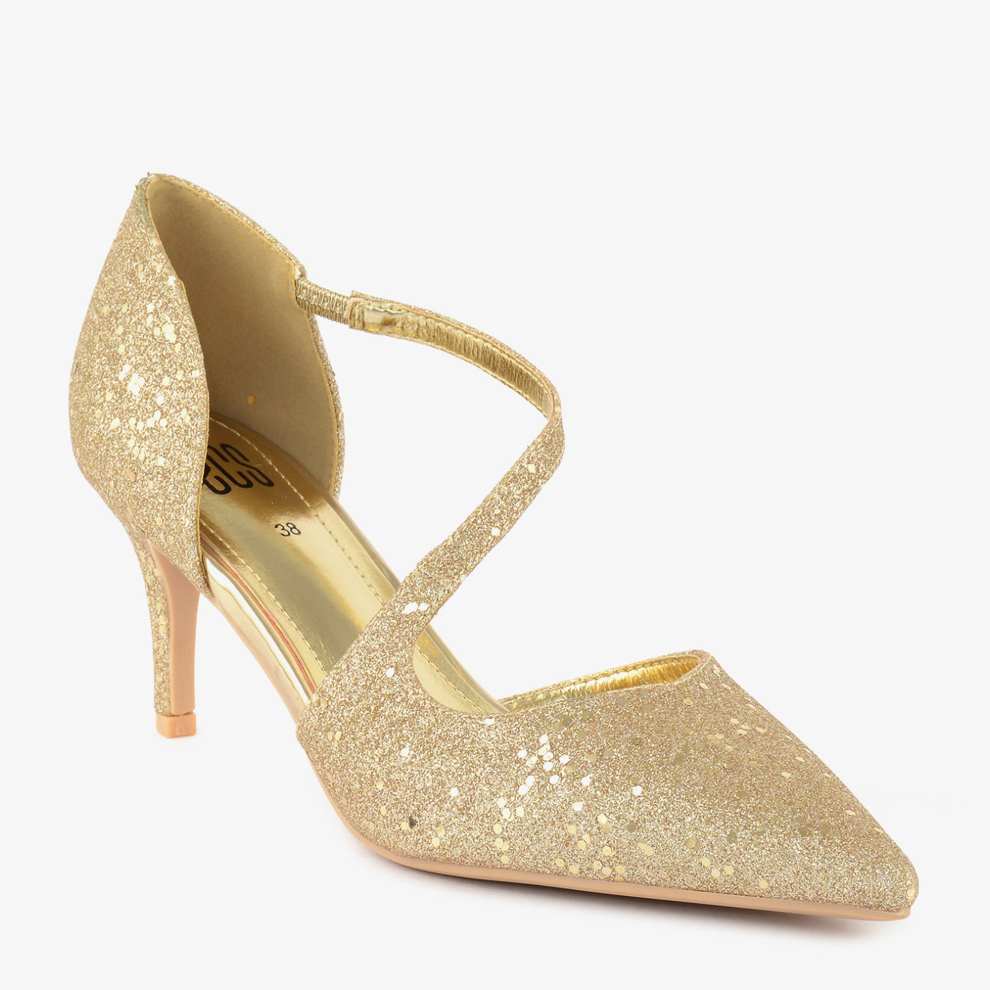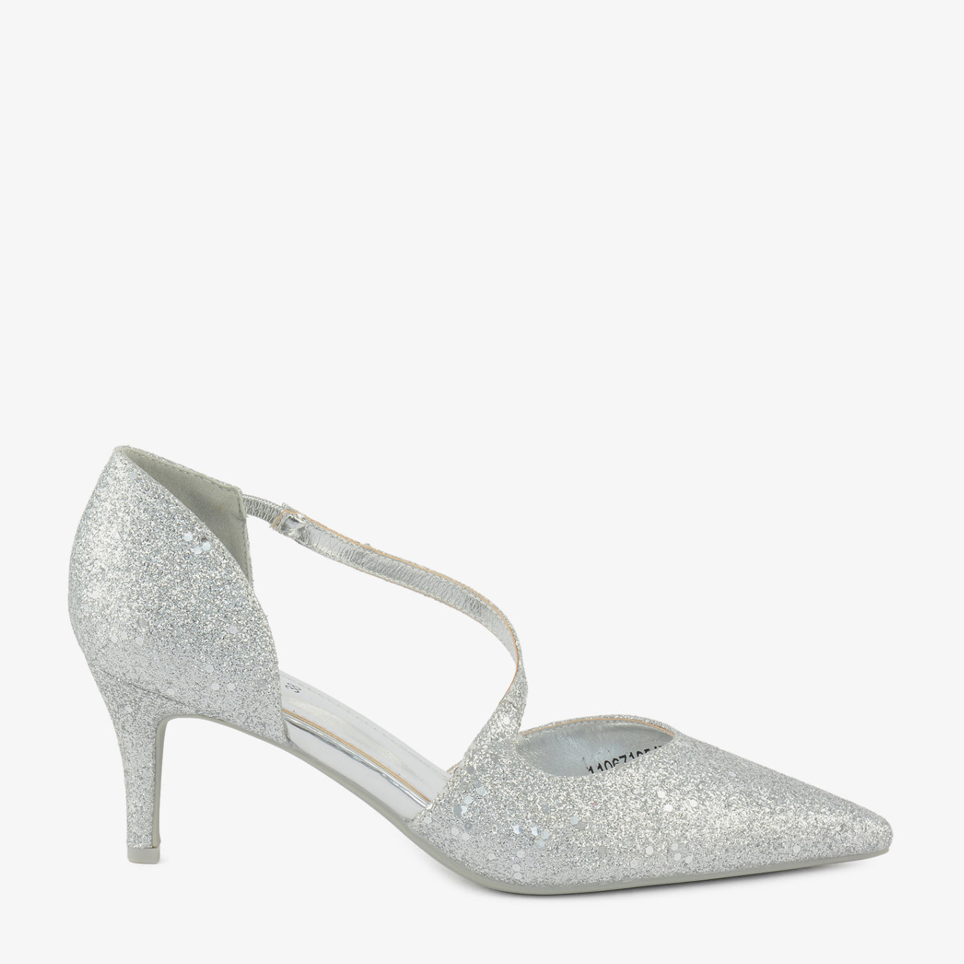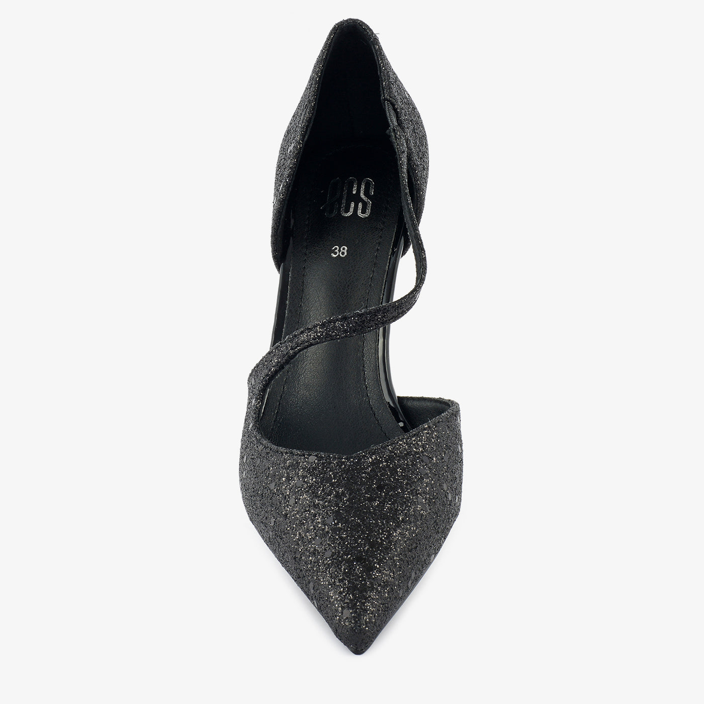 Indulge in timeless elegance with these stunning heels. Crafted with a luxurious glitter fabric, these heels exude sophistication. The criss-cross strap design and stiletto heel offer a glamorous and stylish look.