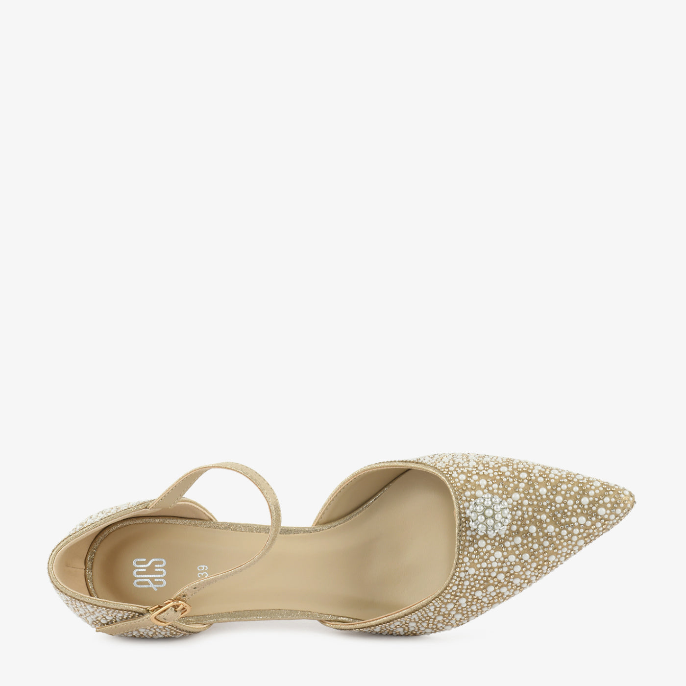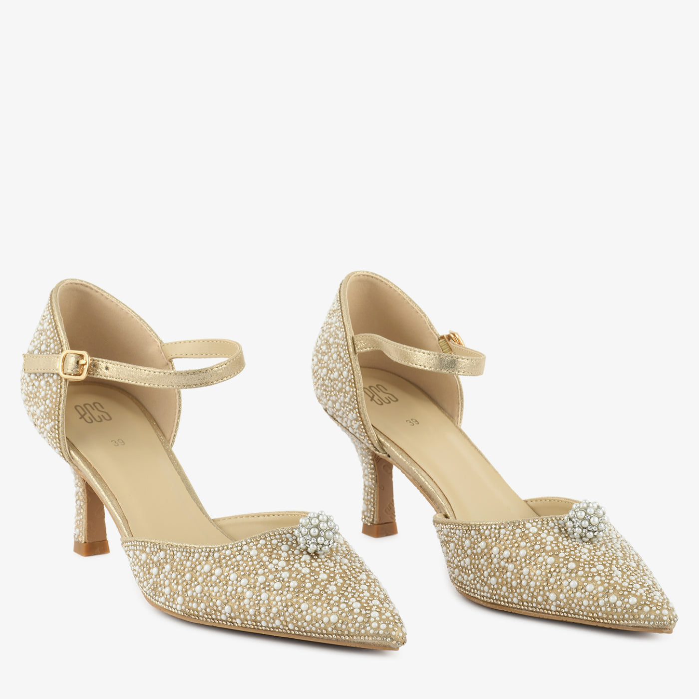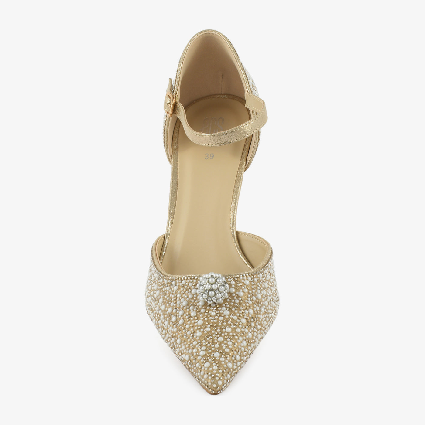 An elegant coat shoe designed with a rich embellished upper that balances class and charm. The ankle strap adds support, while the cushioned interior ensures a comfortable fit. Ideal for weddings, receptions, and formal events.
