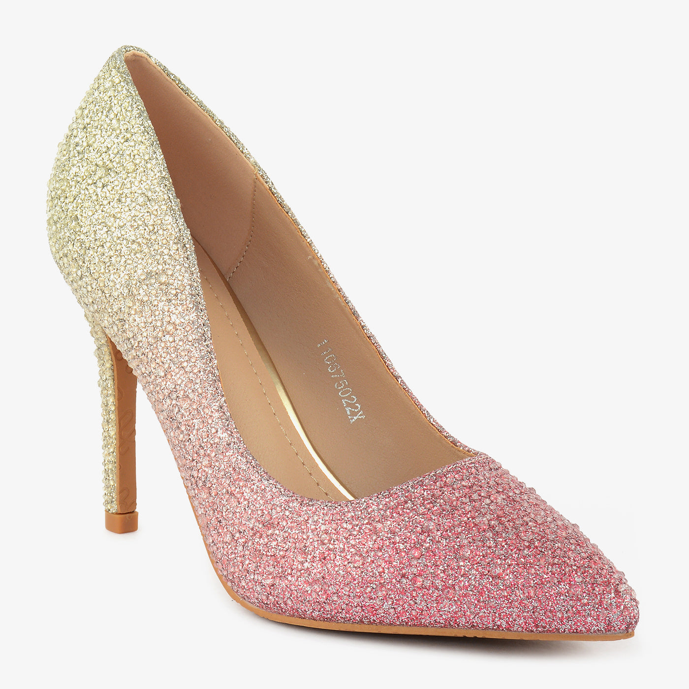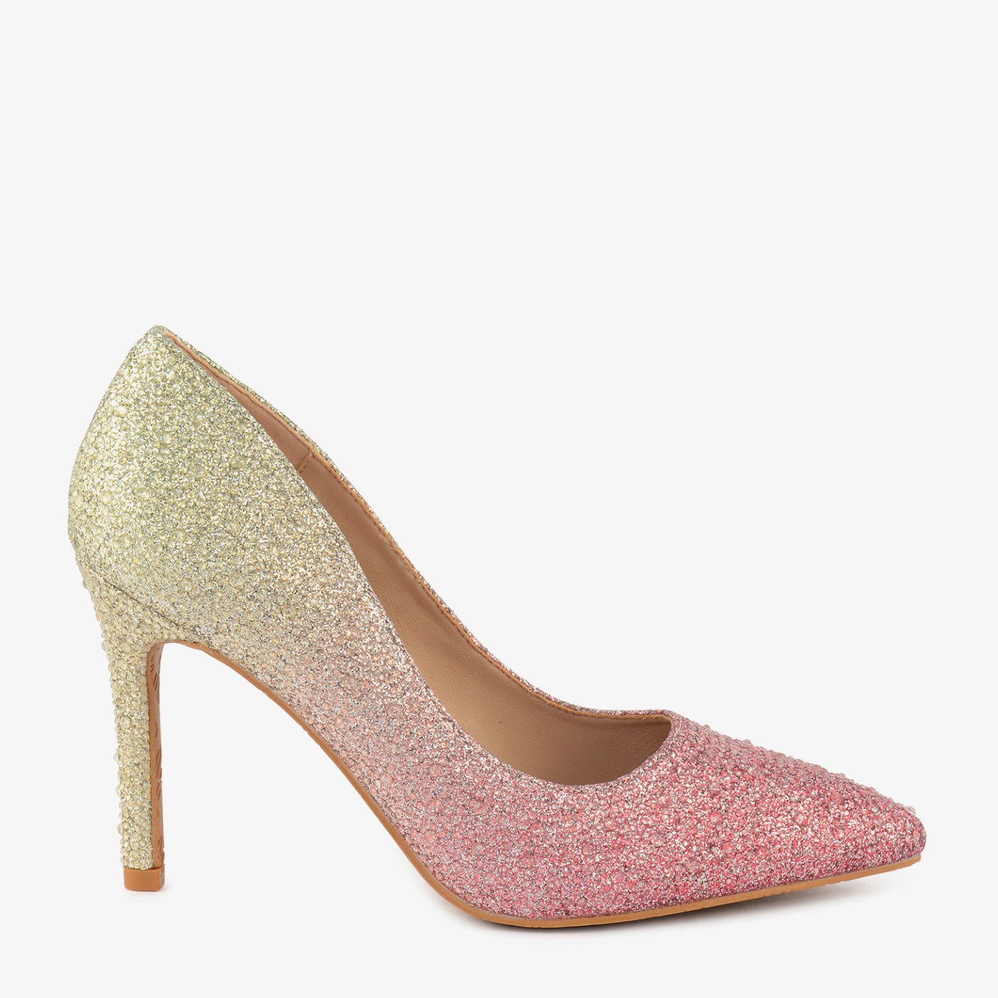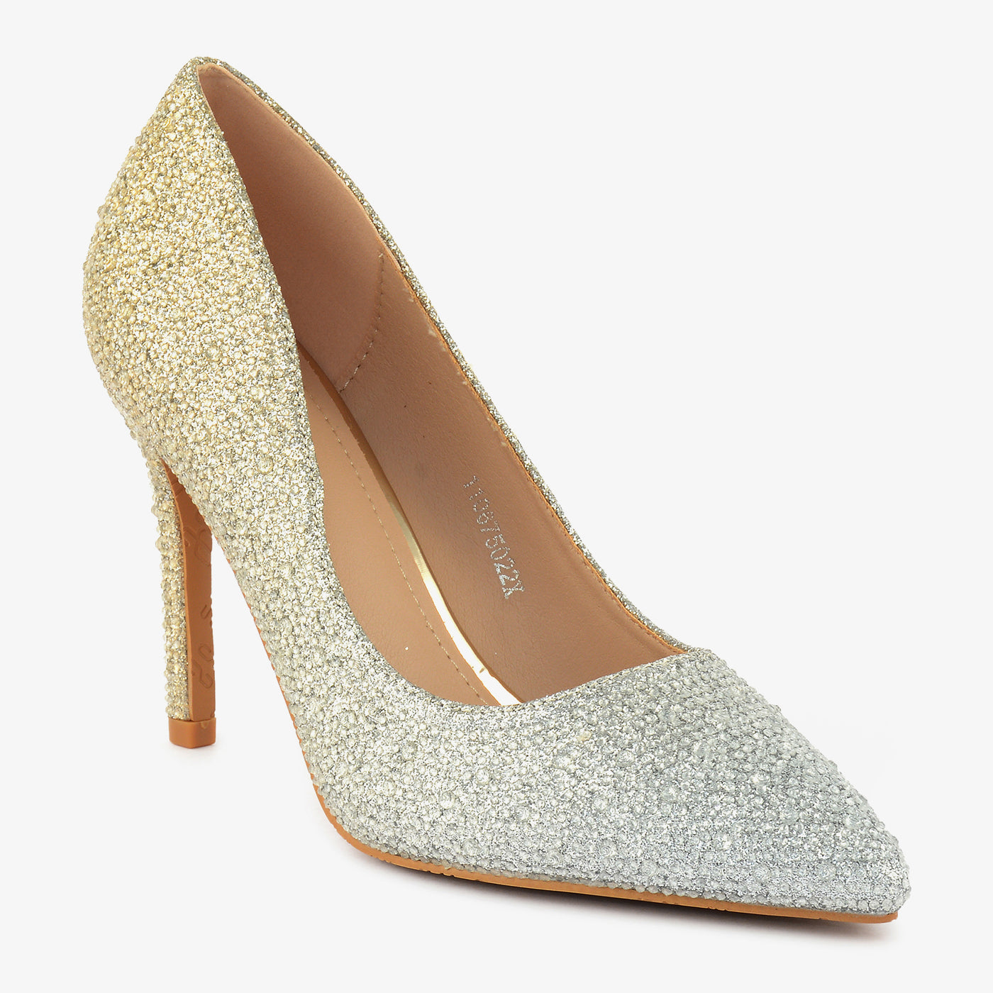 Indulge in pure glamour with these stunning heels. Crafted with a luxurious glitter fabric, these heels exude sophistication. The pointed toe and stiletto heel offer a glamorous and stylish look.