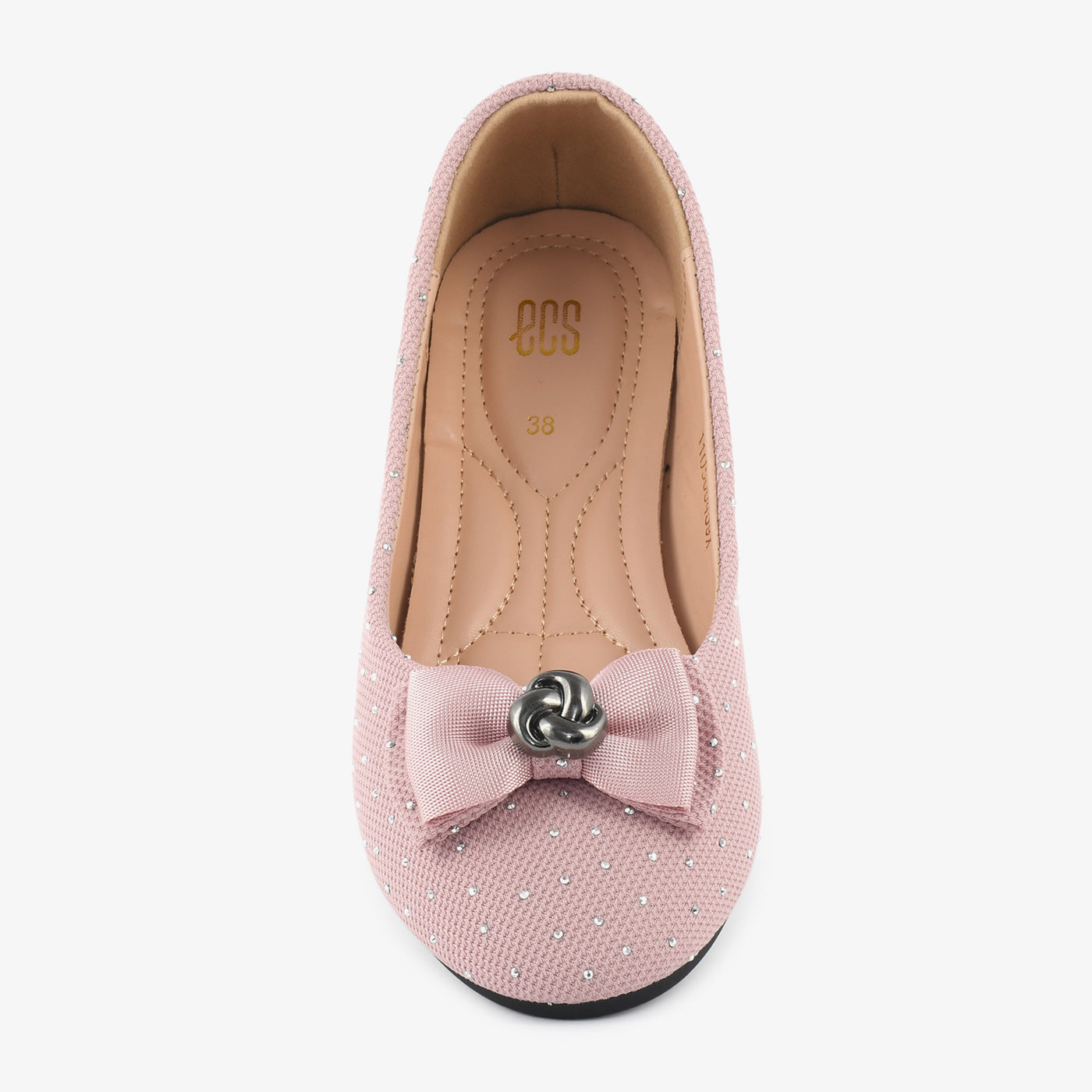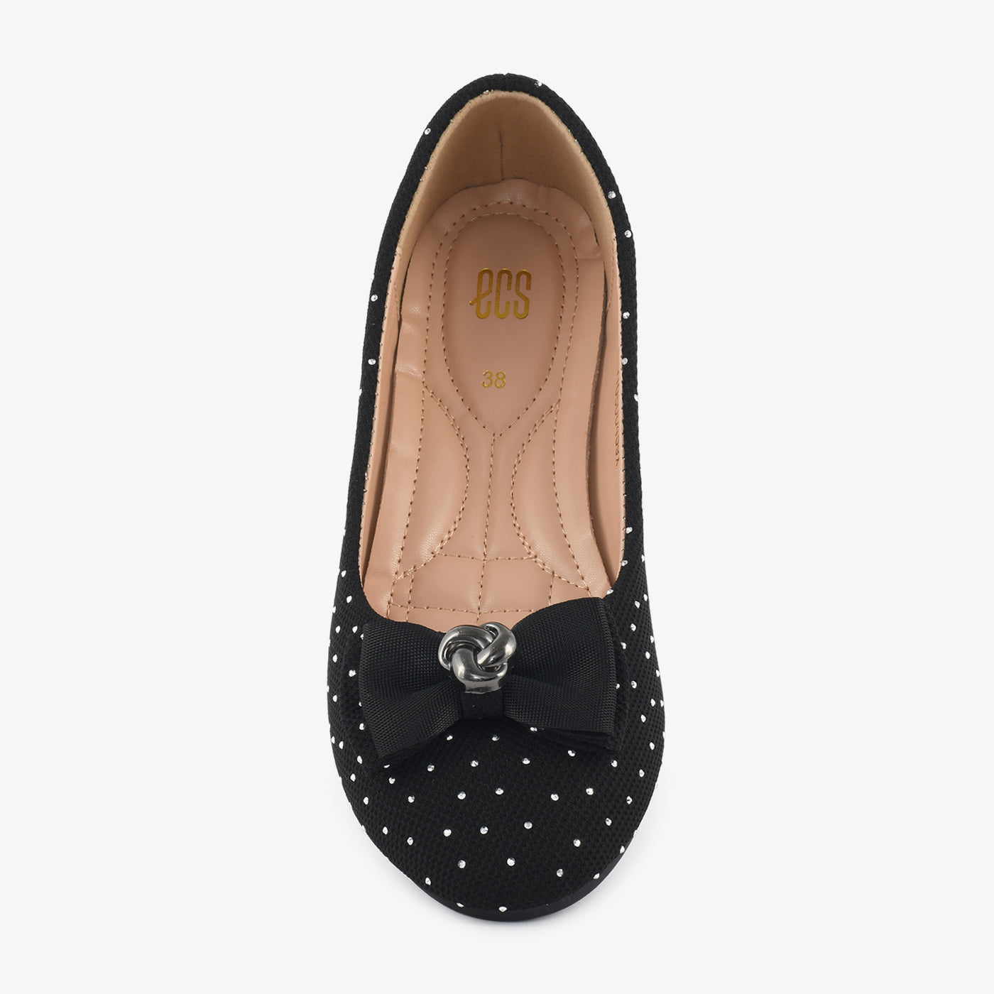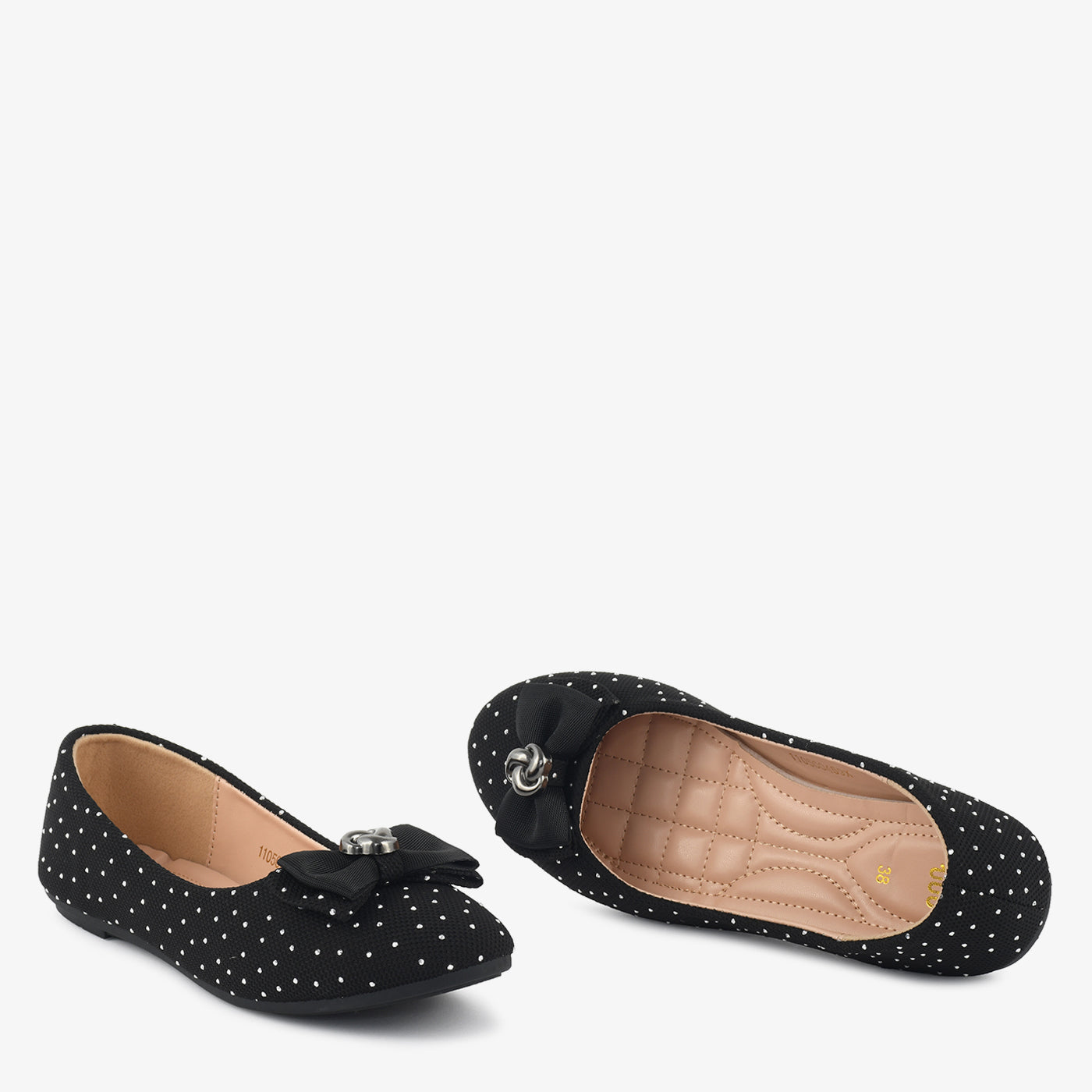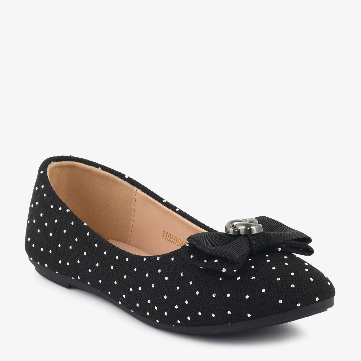 A playful ballerina flat featuring polka dots and a bow accent. Soft fabric construction ensures comfort while adding youthful style. Ideal for casual outings.