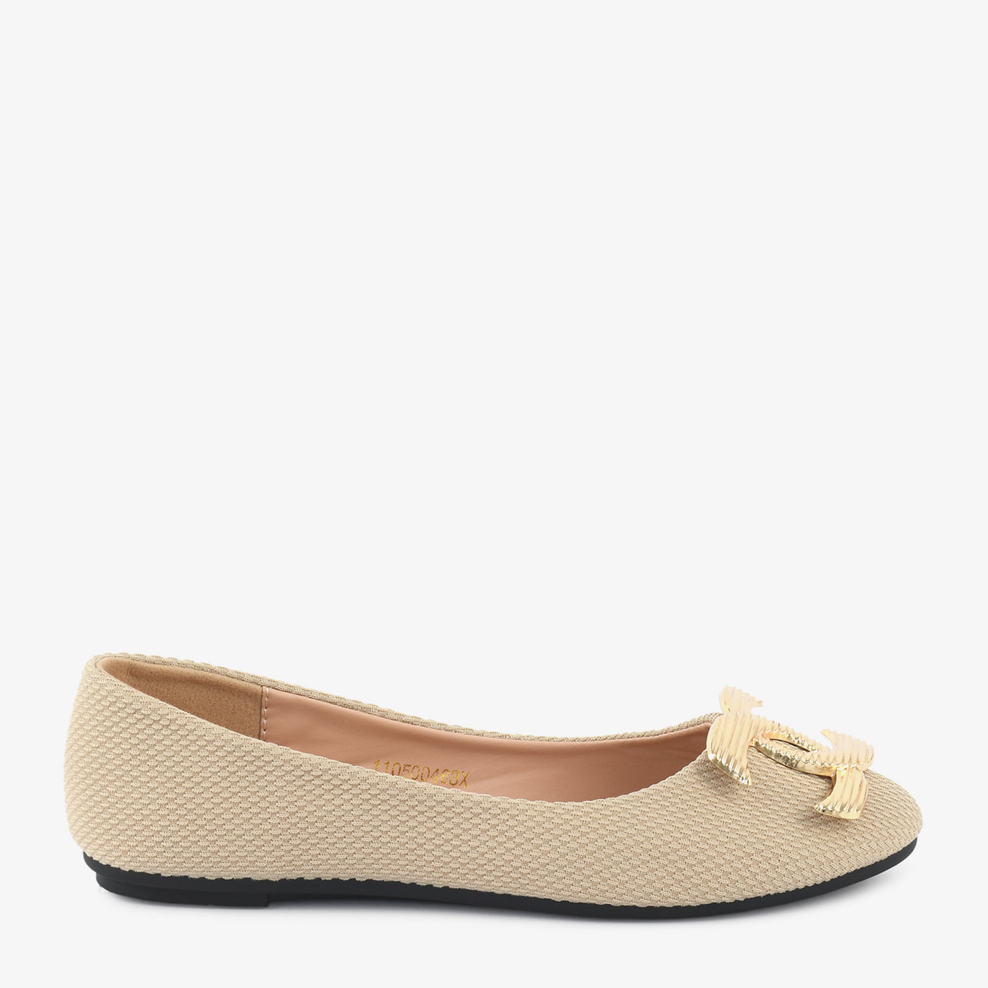 A soft-textured flat featuring a sleek golden bow design for a timeless touch. Ideal for casual outings or light festive wear.