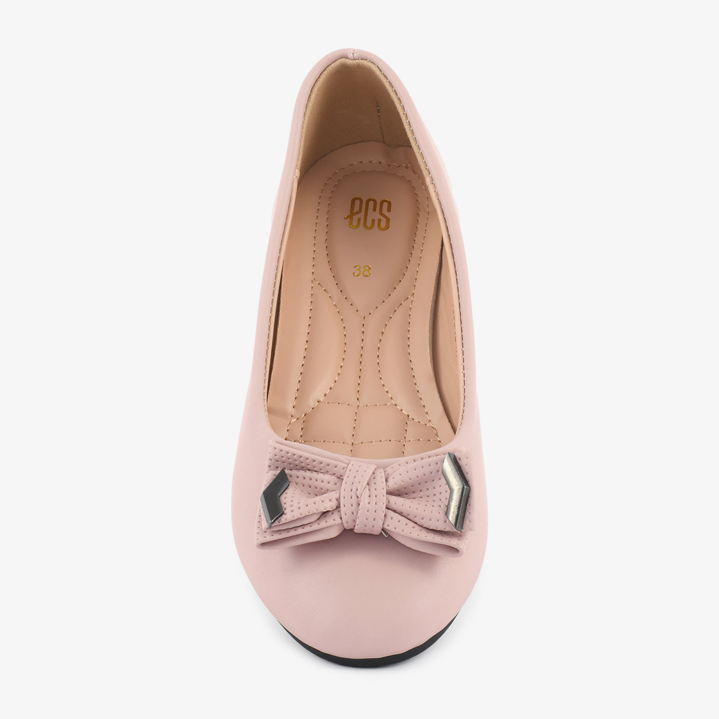 Crafted in smooth faux leather, this flat is adorned with a perforated bow for a subtle yet chic appeal. Lightweight and versatile for daily wear.