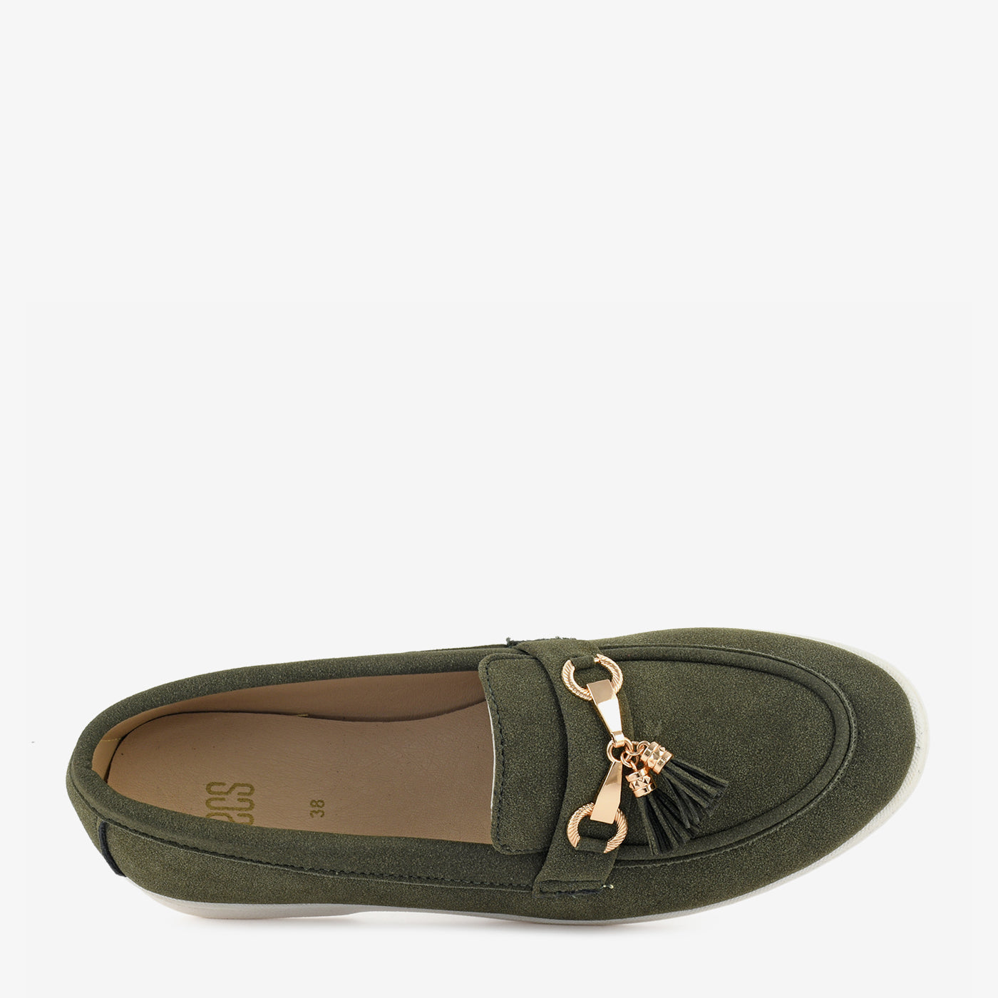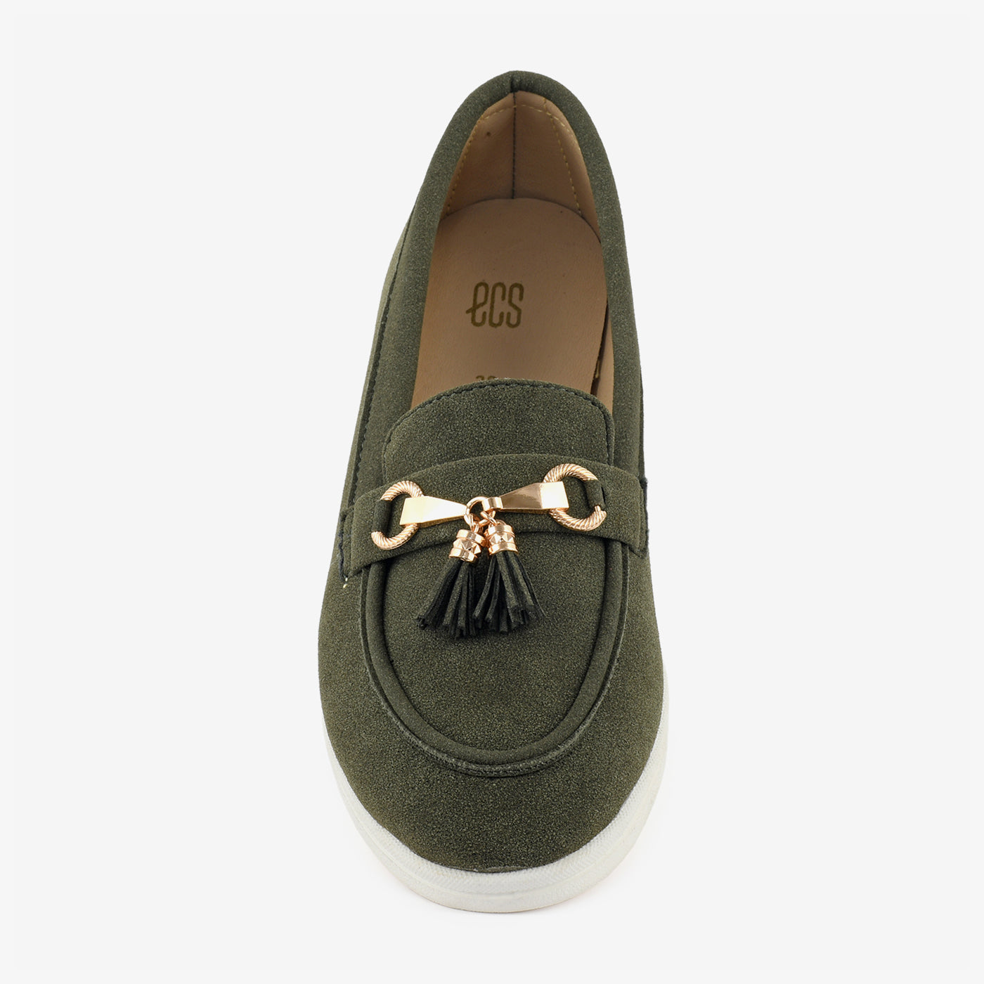 A smart loafer featuring a soft suede-like finish with gold buckle and tassel detail. Sleek and versatile for semi-formal and casual occasions.