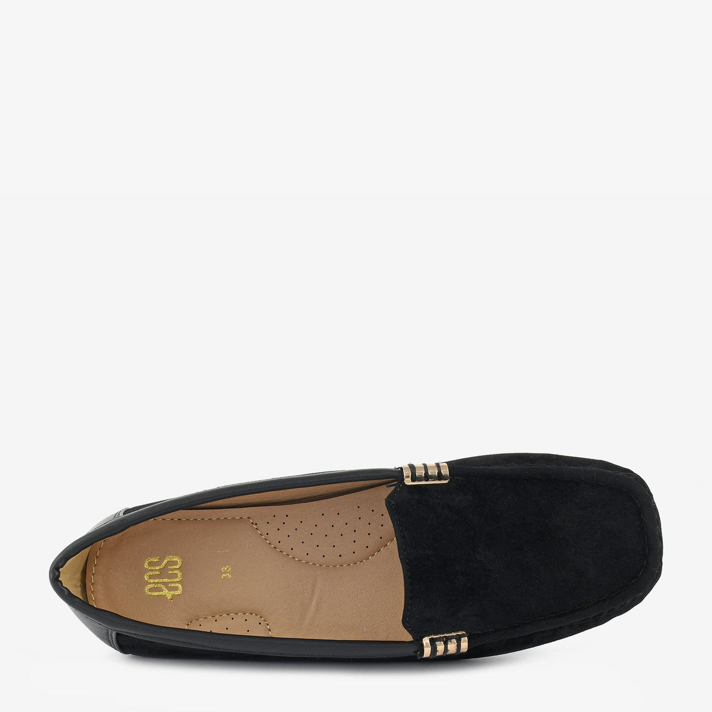This loafer combines a soft suede-like finish with minimal metallic detailing, giving it a clean and modern look. Lightweight and versatile, it works perfectly for casual days as well as travel.