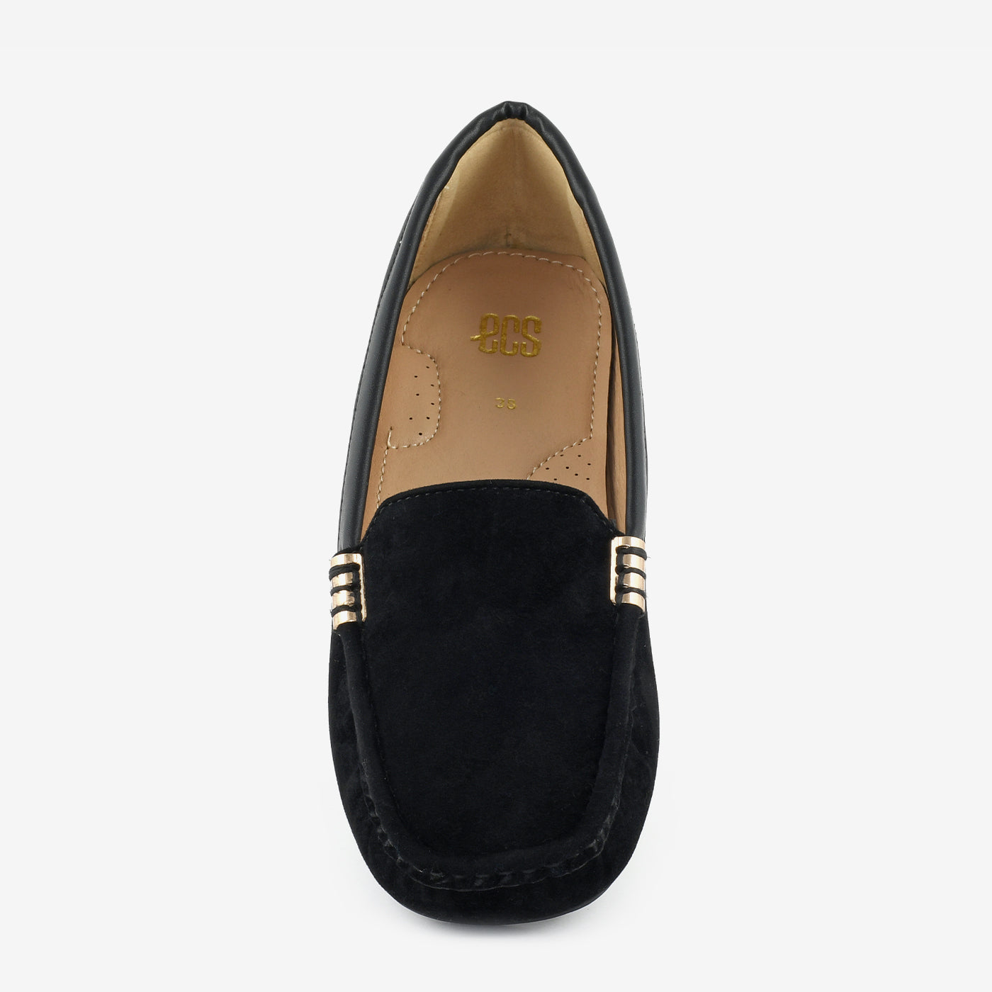 This loafer combines a soft suede-like finish with minimal metallic detailing, giving it a clean and modern look. Lightweight and versatile, it works perfectly for casual days as...