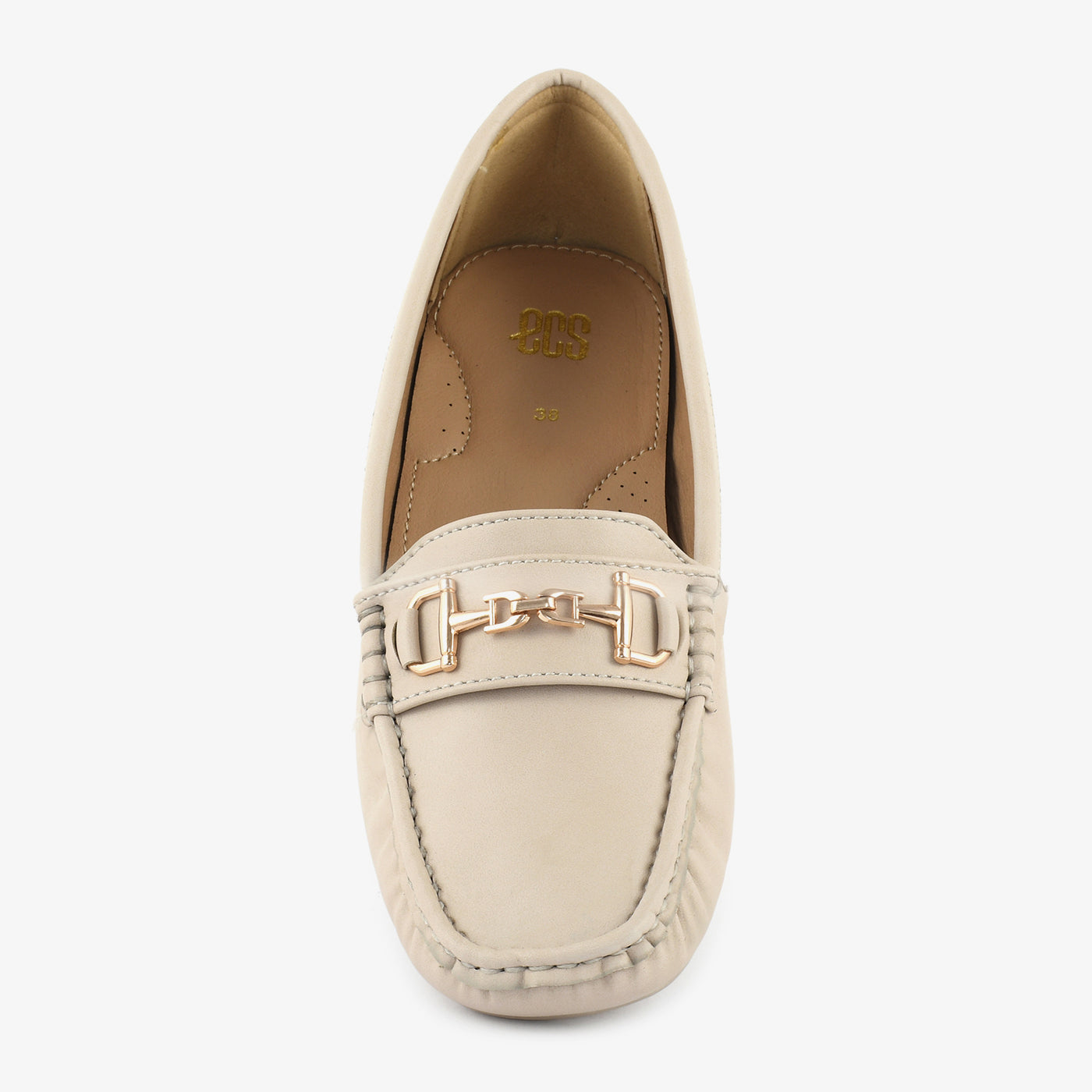 This moccasin blends timeless design with polished hardware for subtle sophistication. Its cushioned lining offers comfort all day, making it a reliable choice for office or casual wear.