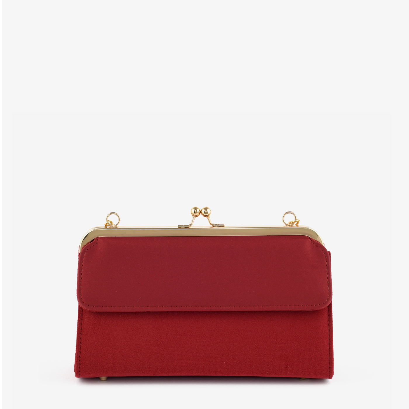 The Vintage Frame Crossbody brings a touch of classic elegance with its unique frame design. The rich red hue adds a pop of color, while the gold chain strap provides a luxurious accent. The structured silhouette and kiss-lock closure evoke a vintage charm, making it a standout piece for special occasions or adding a touch of sophistication to your evening look.