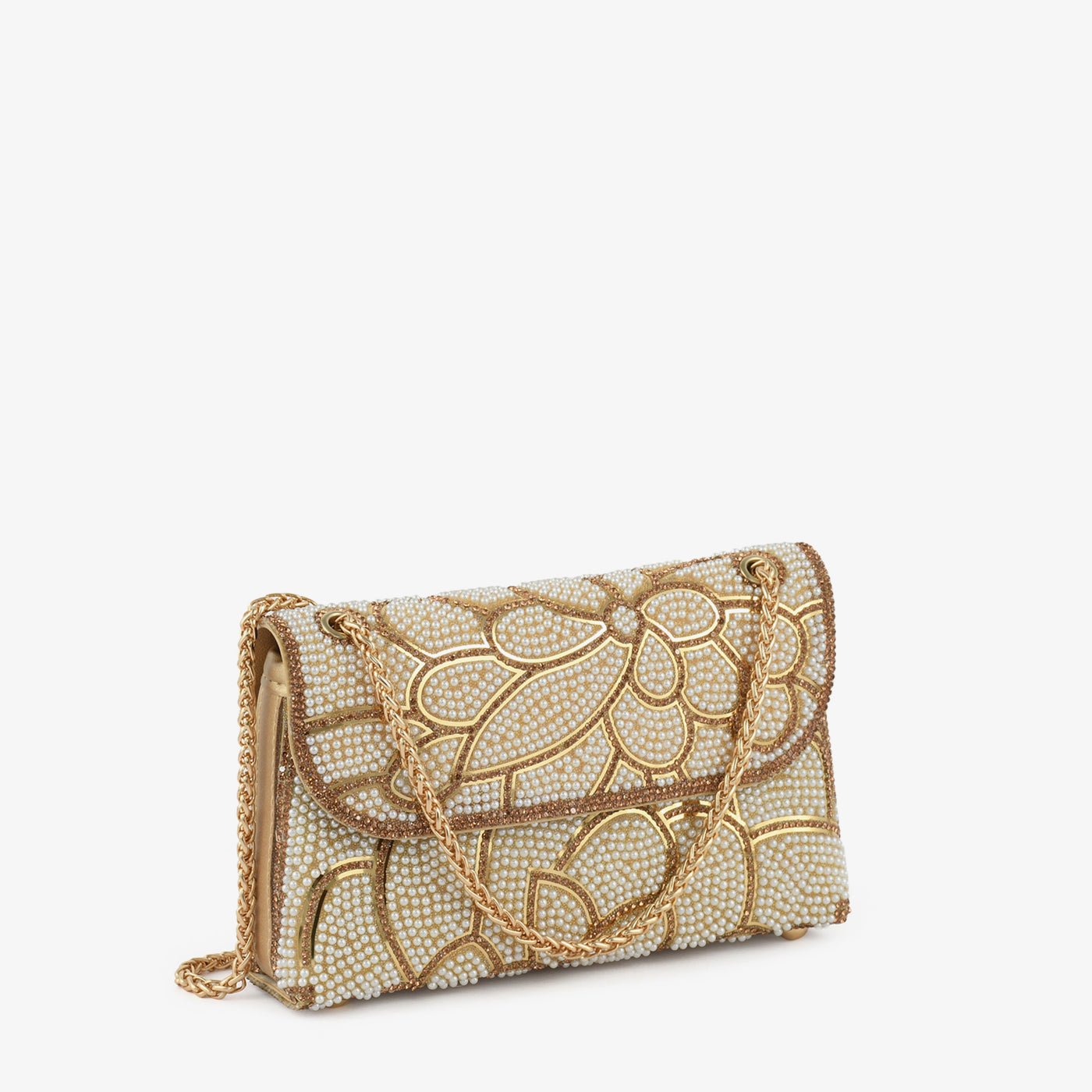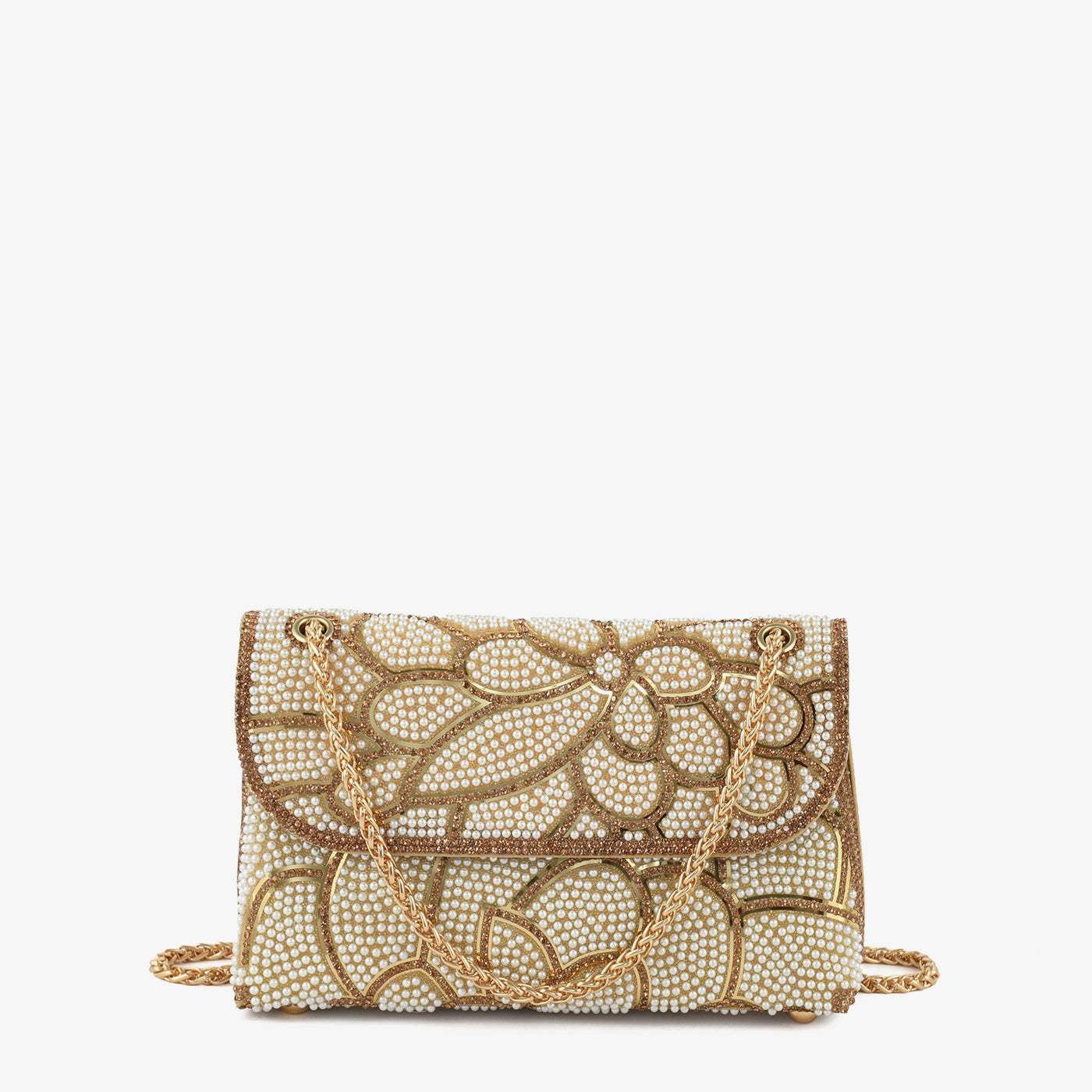A beautiful clutch with floral beadwork, blending traditional charm with contemporary craftsmanship. Its floral design adds richness to outfits.